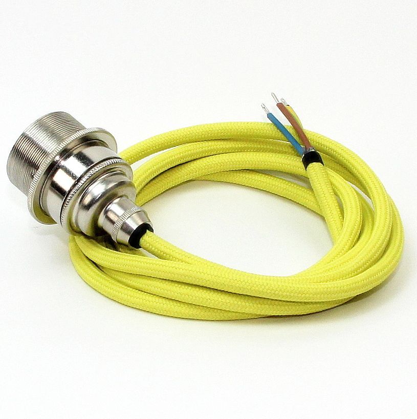 Textilkabel Lampenpendel gelb mit E27 Vintage Metall-Fassung Nickel matt