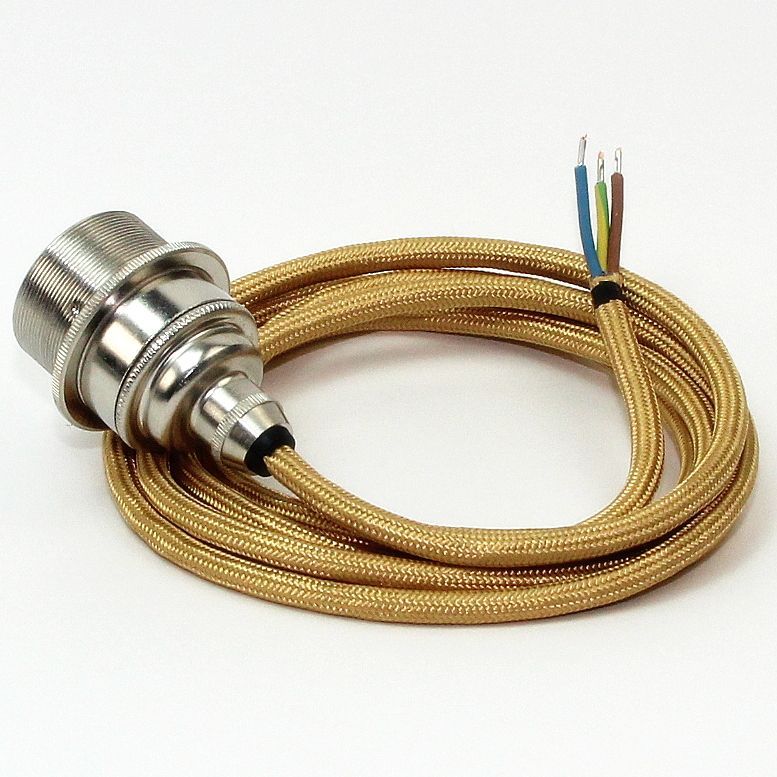 Textilkabel Lampenpendel gold mit E27 Vintage Metall-Fassung Nickel matt