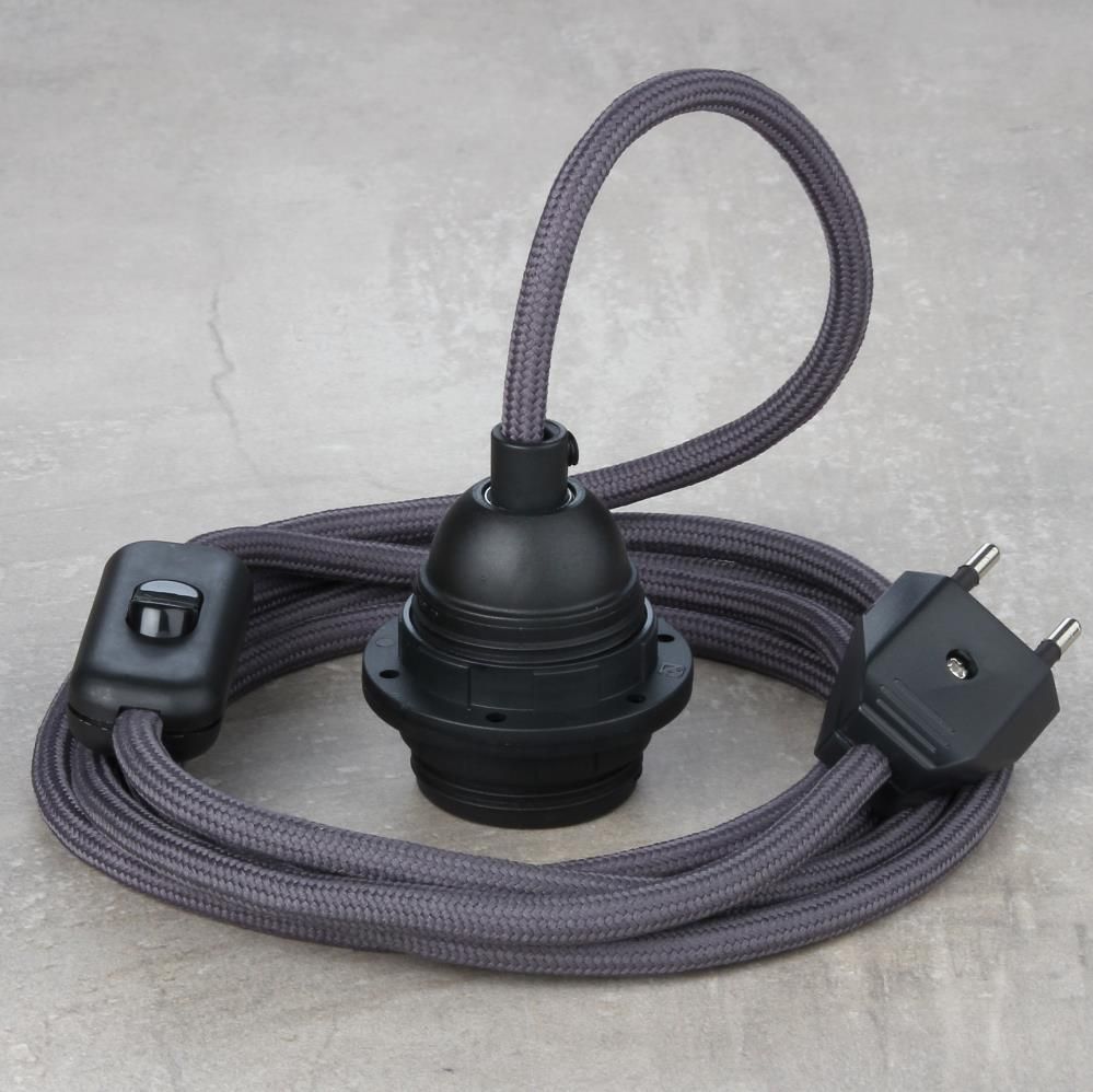 Textilkabel Lampenpendel graphit-grau mit E27 Kunststoff Lampenfassung Schnurschal