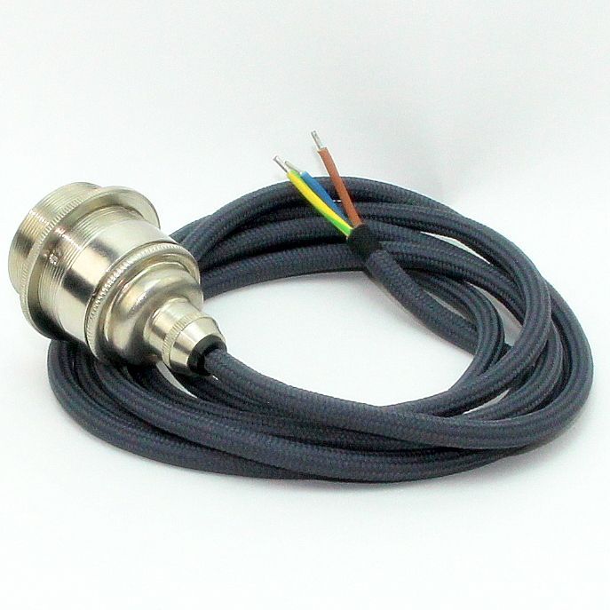 Textilkabel Lampenpendel graphit-grau mit E27 Vintage Metall-Fassung Nickel matt