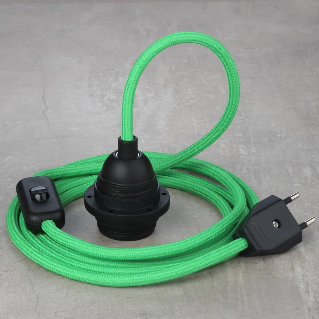 Textilkabel Lampenpendel kiwigrün mit E27 Kunststoff Lampenfassung Schnurschalter