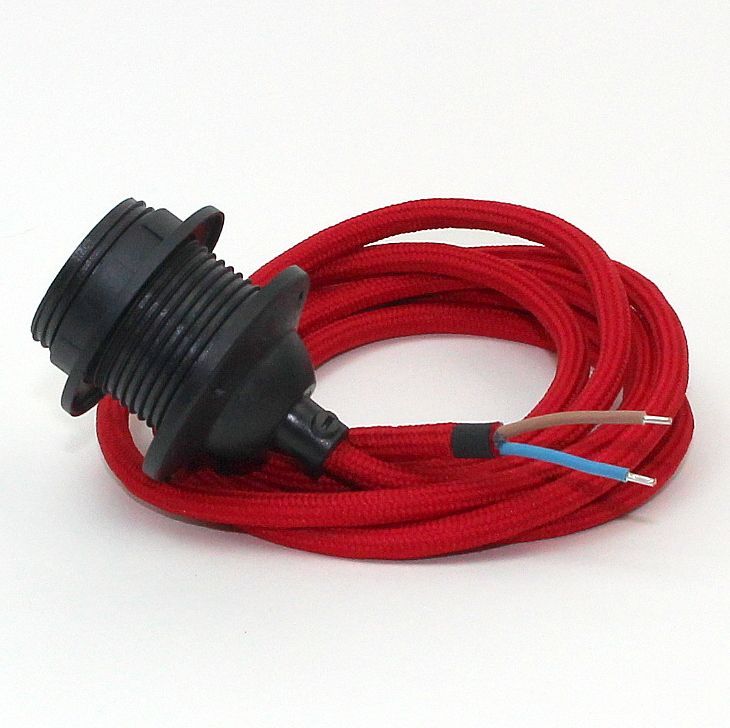 Textilkabel Lampenpendel rot mit E27 Dach-Lampenfassung schwarz