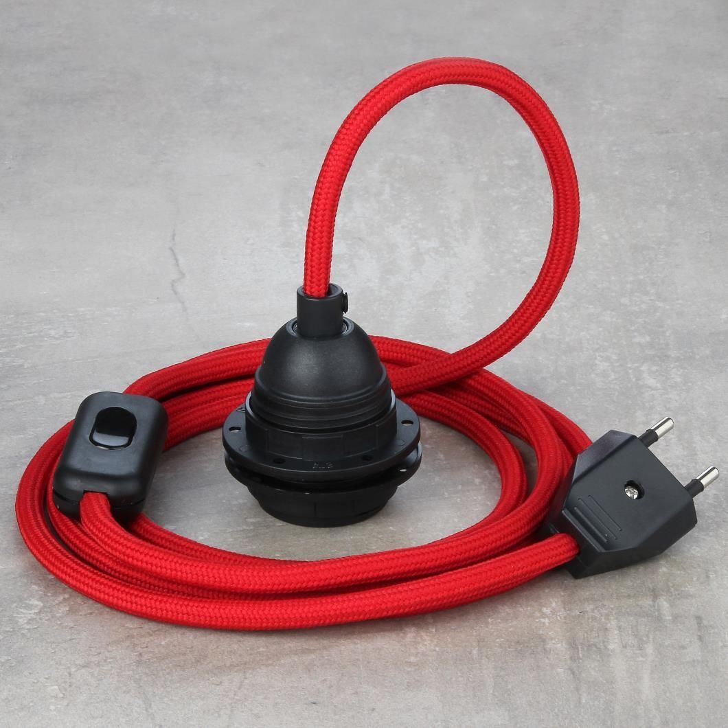 Textilkabel Lampenpendel rot mit E27 Kunststoff Lampenfassung Schnurschalter und