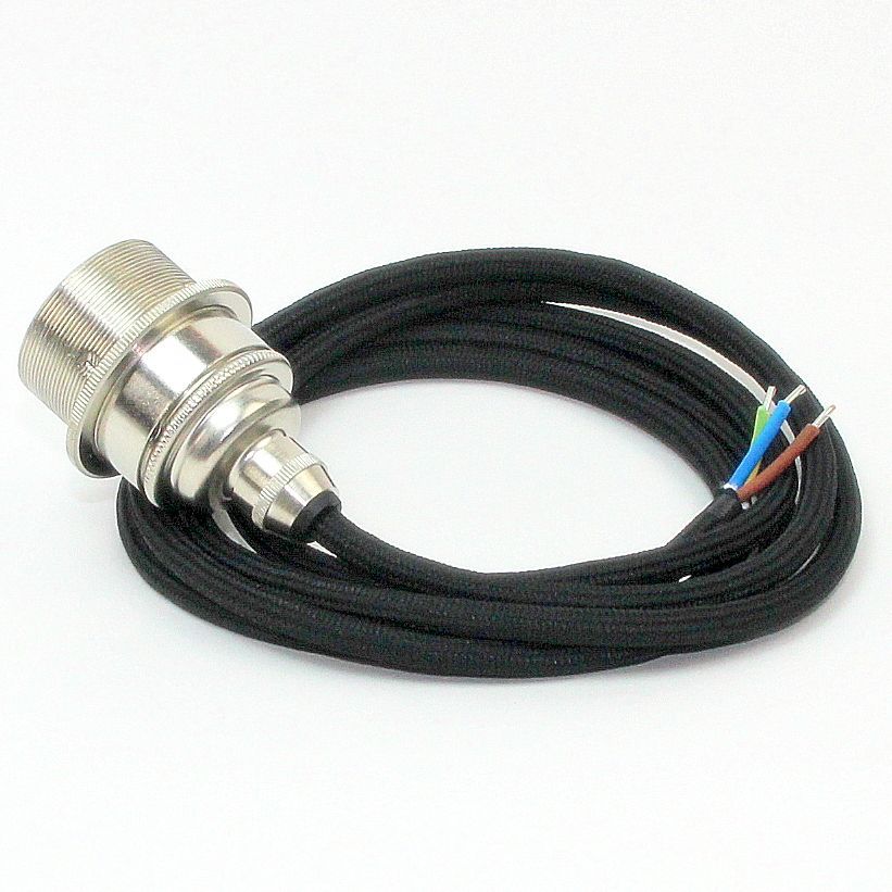 Textilkabel Lampenpendel schwarz mit E27 Vintage Metall-Fassung Nickel matt
