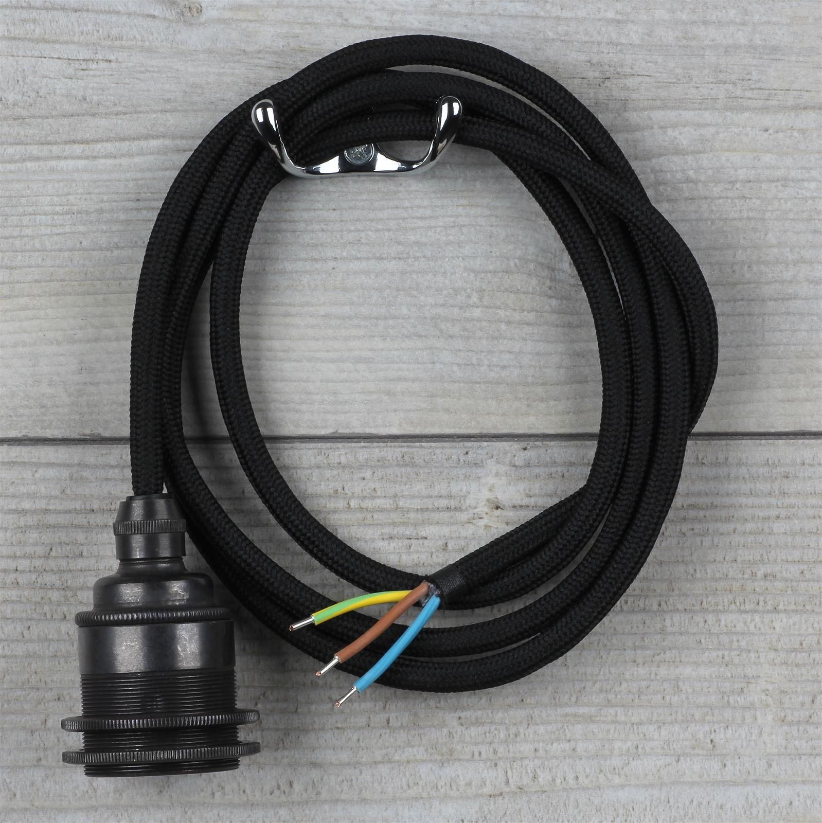 Textilkabel Lampenpendel schwarz mit E27 Vintage Metall-Fassung Tiffany