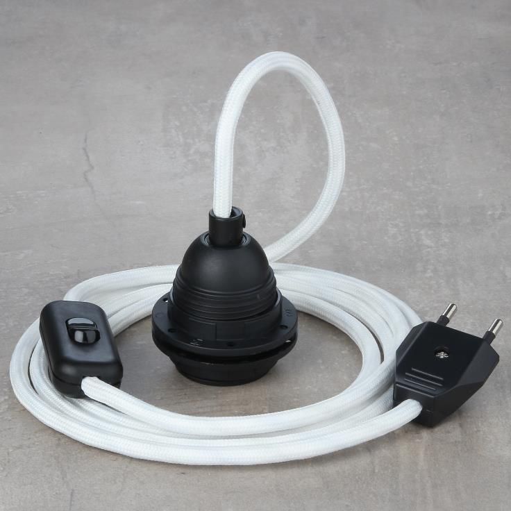 Textilkabel Lampenpendel weiß mit E27 Kunststoff Lampenfassung Schnurschalter und