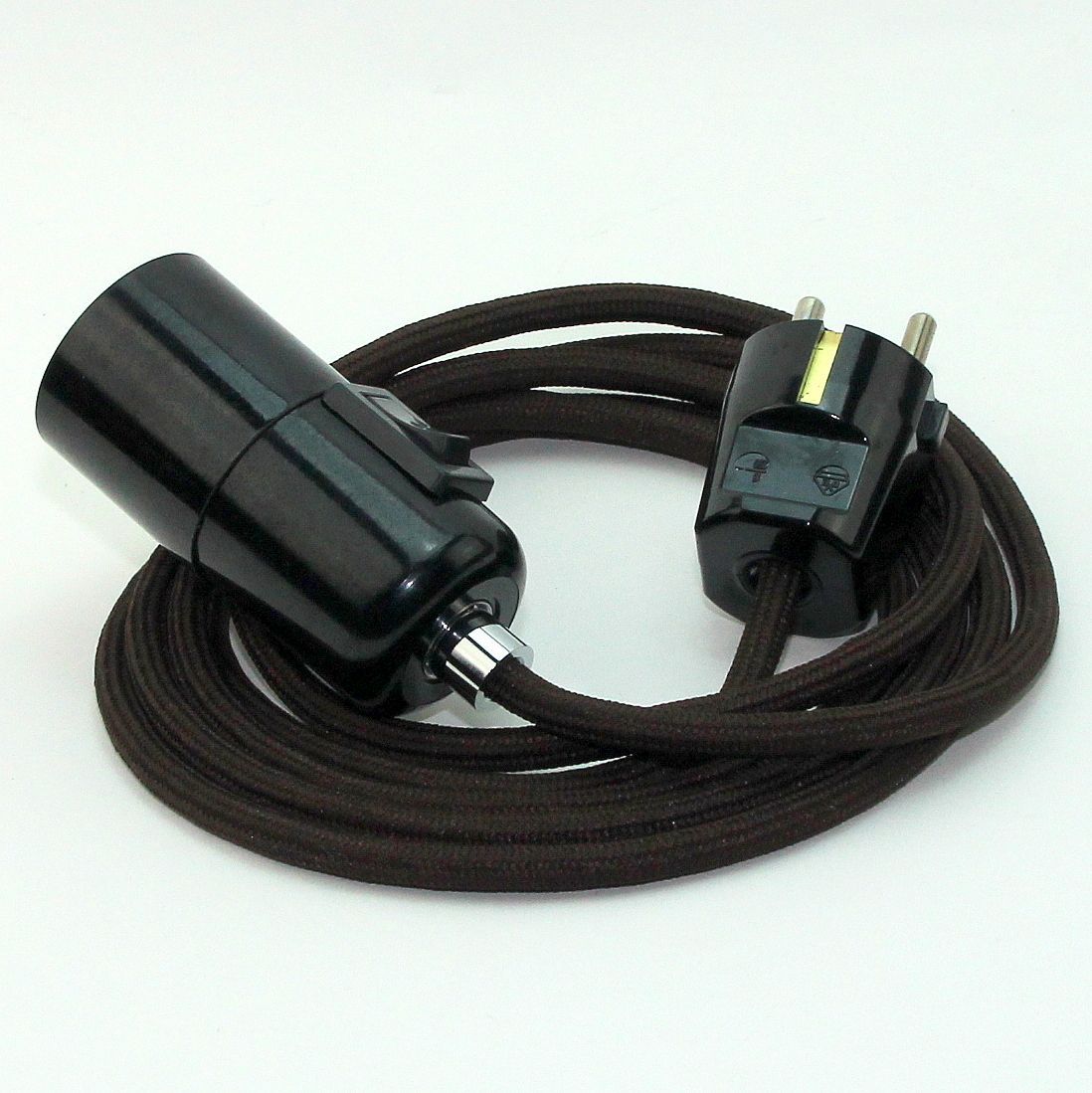 Textilkabel Pendel braun E27 Bakelit Vintage Fassung mit Schalter schwarz und