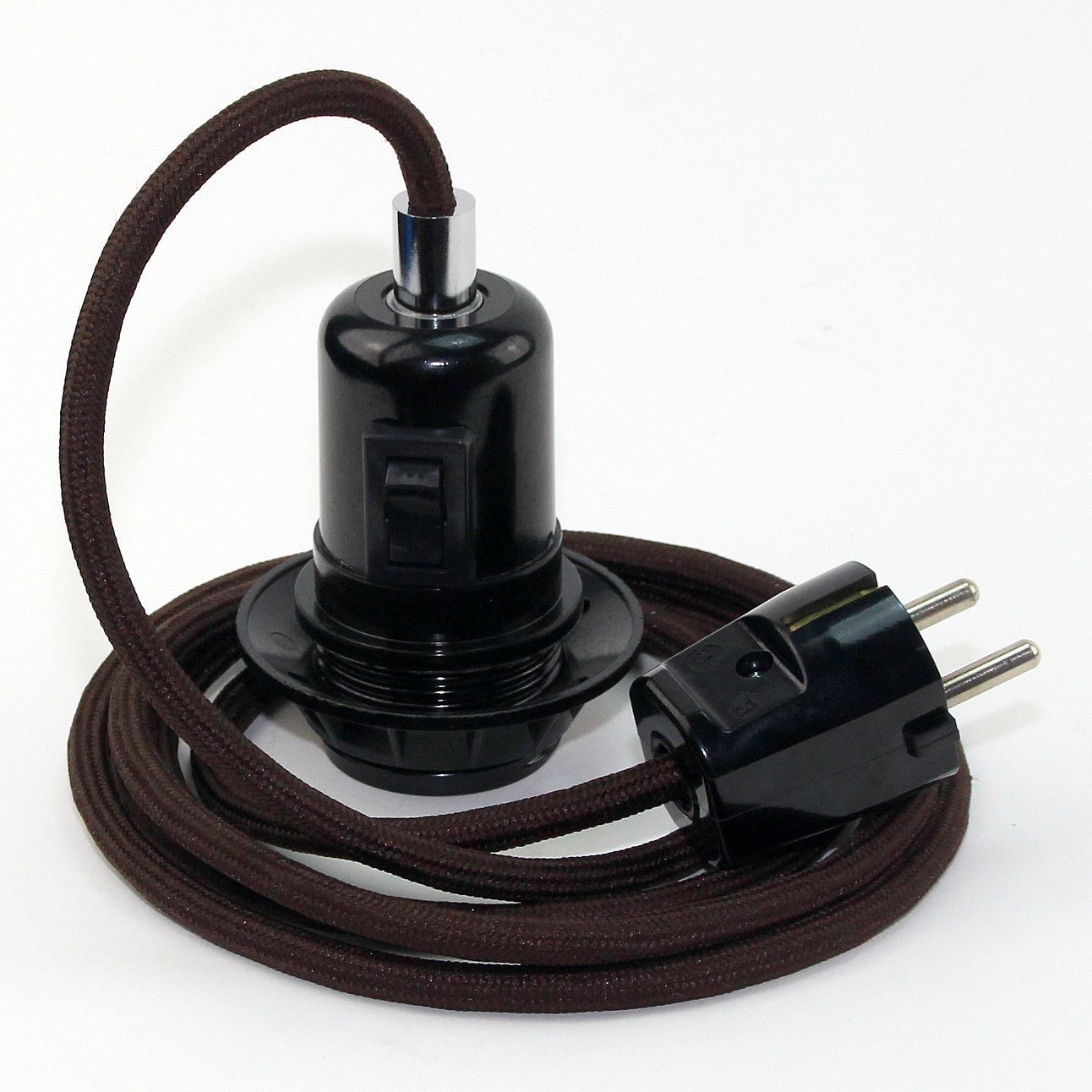 Textilkabel Pendel braun E27 Bakelit Vintage Fassung Teilgewindemantel mit Schalte