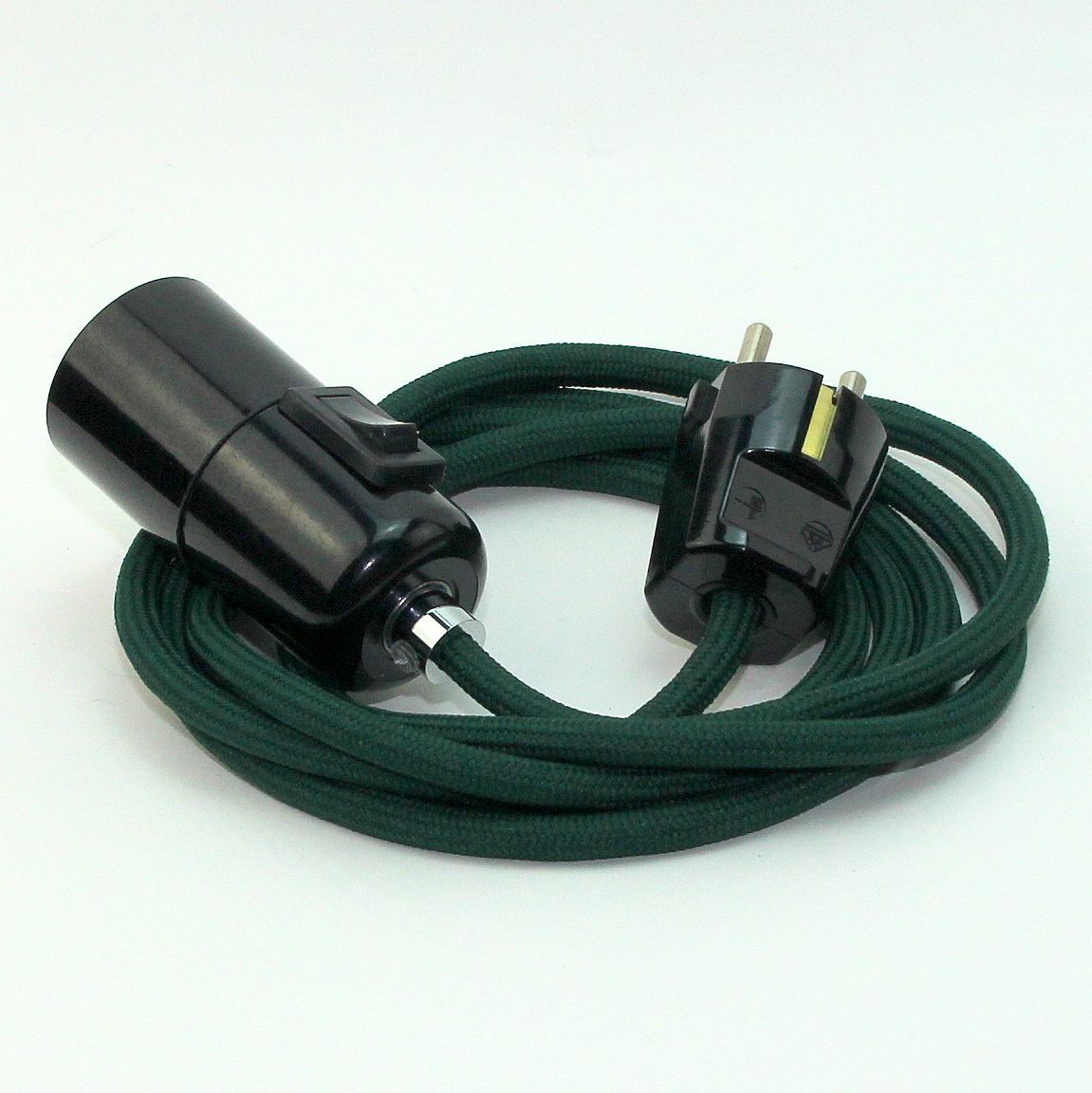 Textilkabel Pendel dunkelgrün E27 Bakelit Vintage Fassung mit Schalter schwarz
