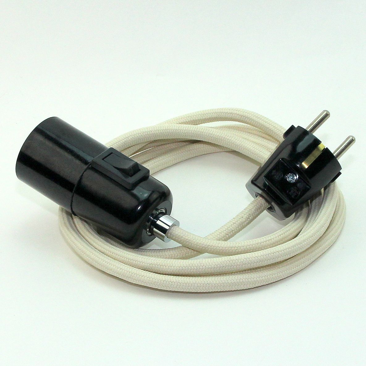 Textilkabel Pendel elfenbein E27 Bakelit Vintage Fassung mit Schalter schwarz und