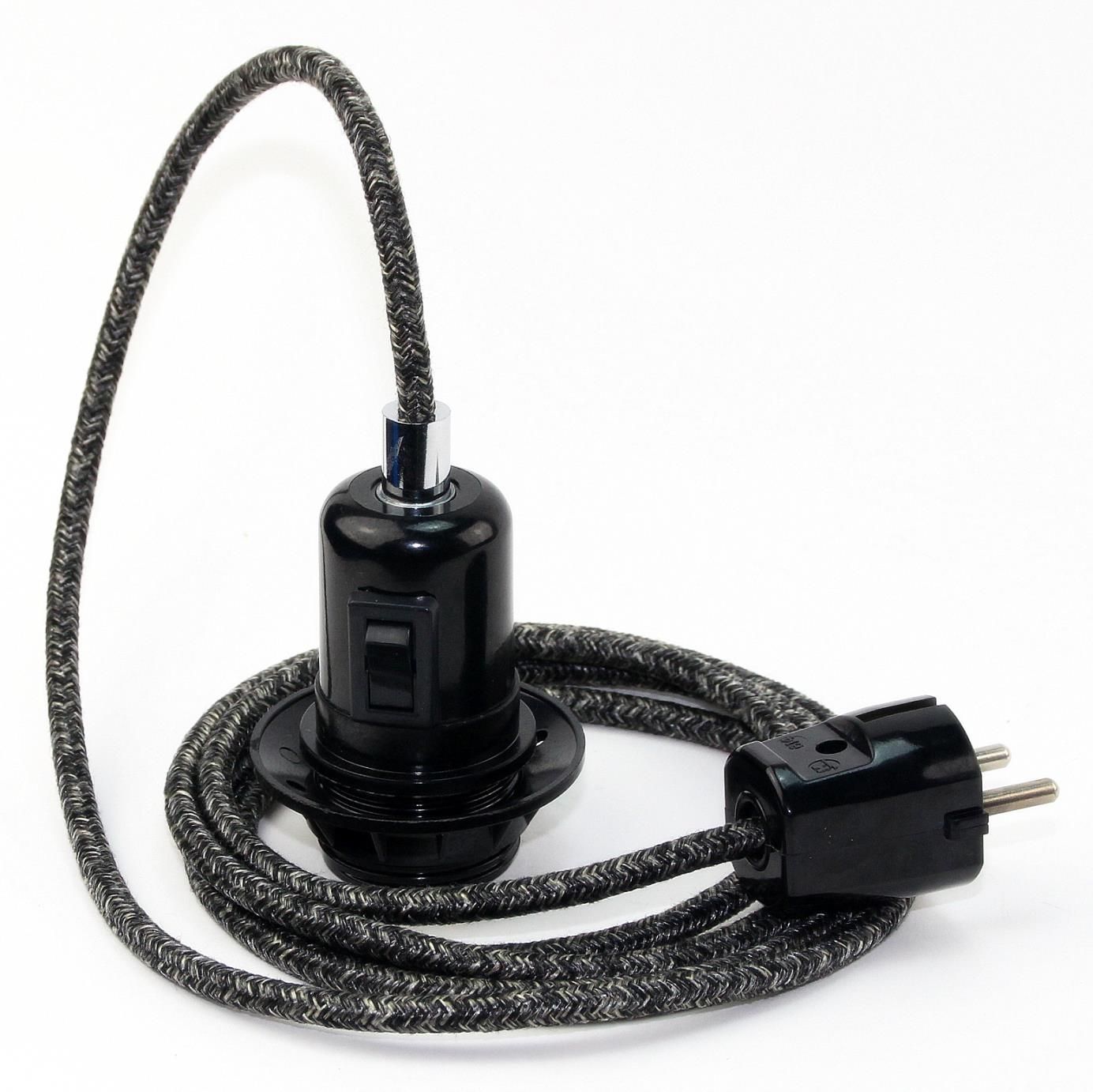 Textilkabel Pendel grau meliert E27 Bakelit Vintage Fassung Teilgewindemantel mit