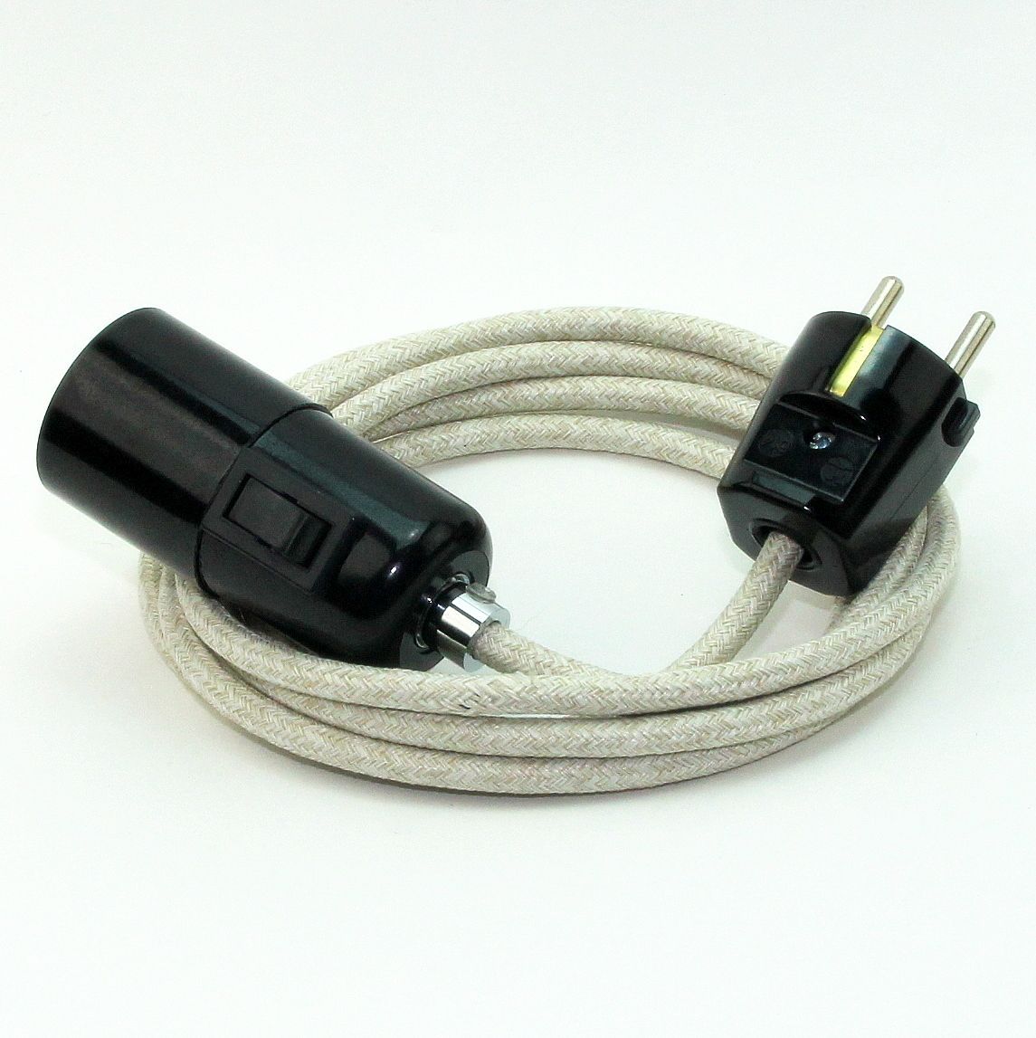 Textilkabel Pendel kiesel E27 Bakelit Vintage Fassung mit Schalter schwarz und