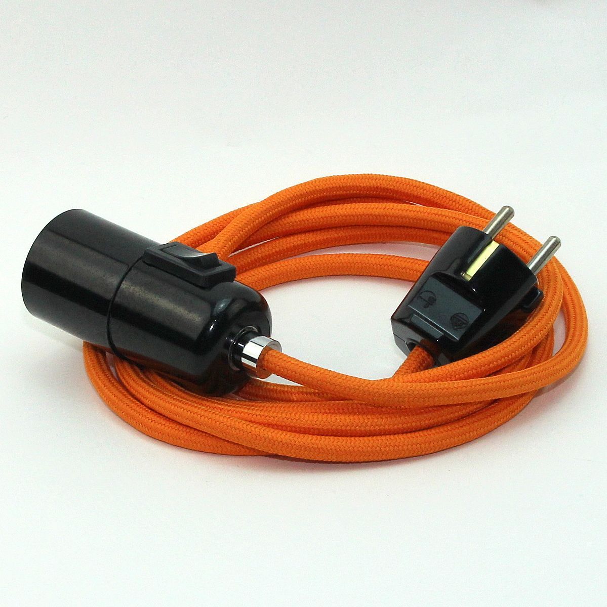 Textilkabel Pendel orange E27 Bakelit Vintage Fassung mit Schalter schwarz und