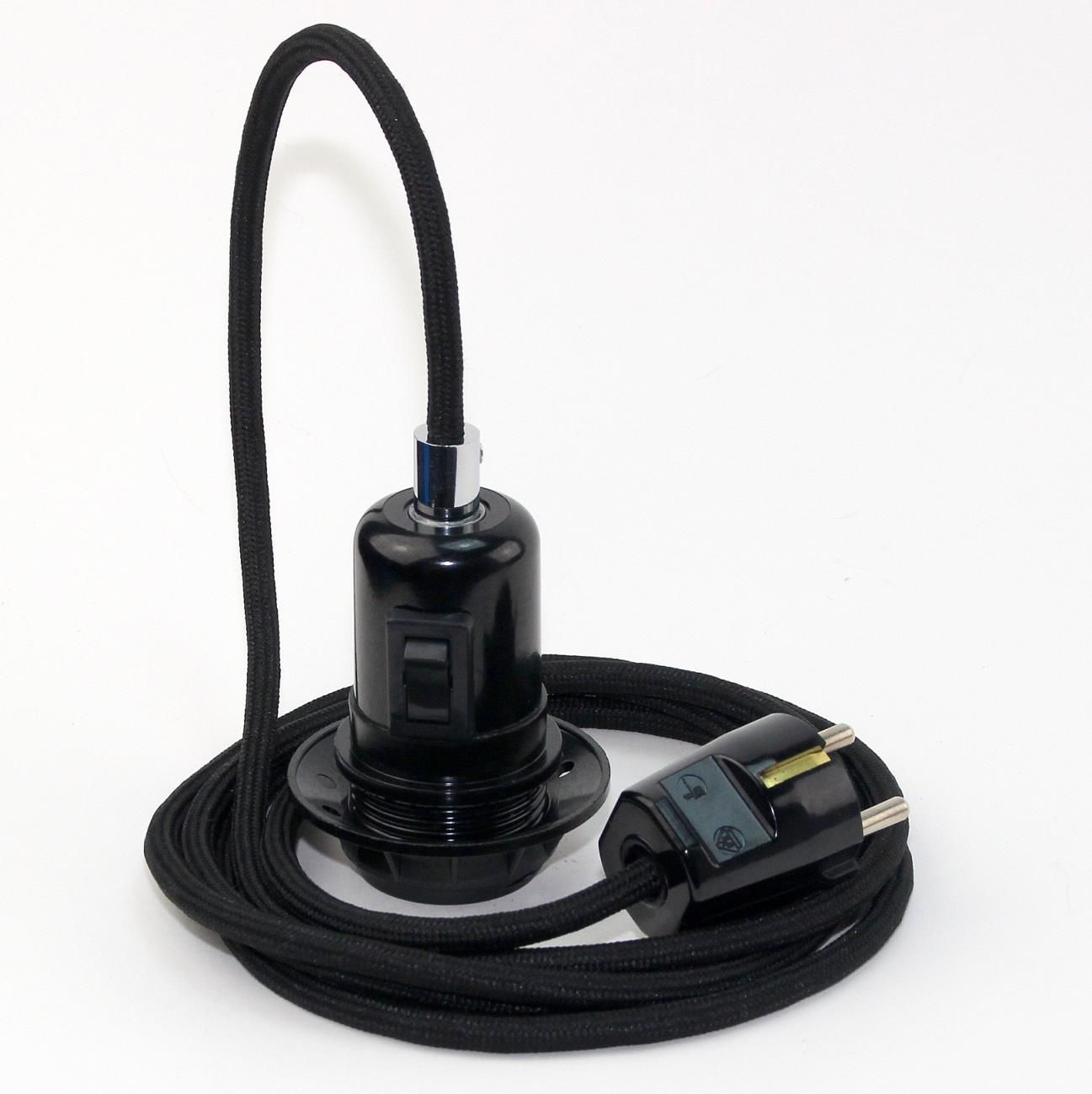 Textilkabel Pendel schwarz E27 Bakelit Vintage Fassung Teilgewindemantel mit Schal