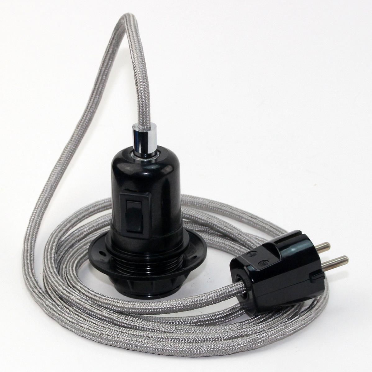 Textilkabel Pendel silber E27 Bakelit Vintage Fassung Teilgewindemantel mit Schalt