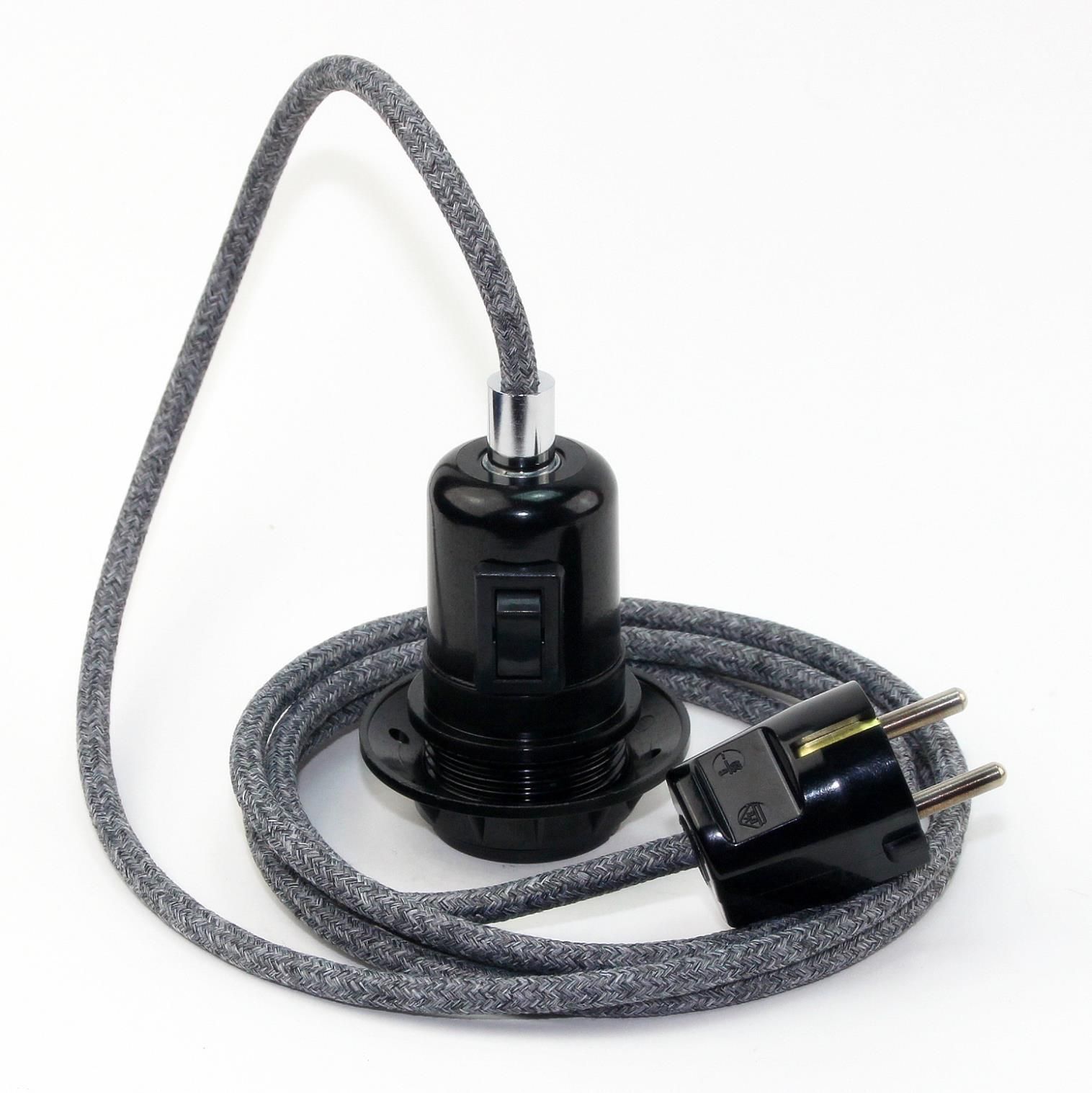 Textilkabel Pendel steingrau E27 Bakelit Vintage Fassung Teilgewindemantel mit