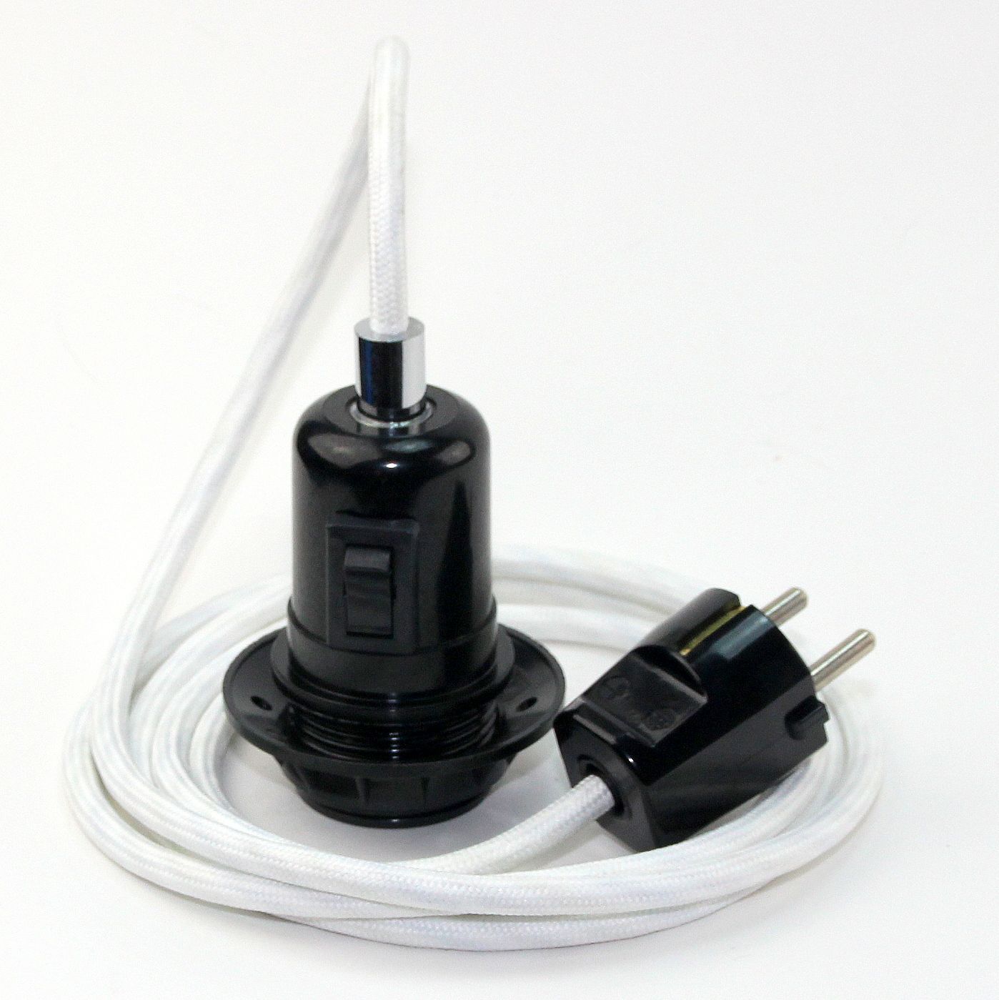 Textilkabel Pendel weiß E27 Bakelit Vintage Fassung Teilgewindemantel mit Schalter