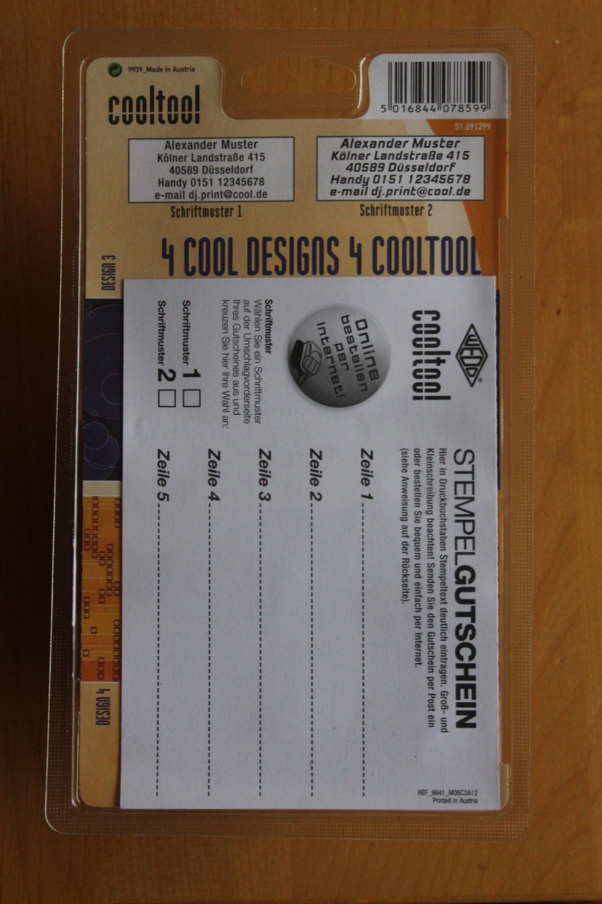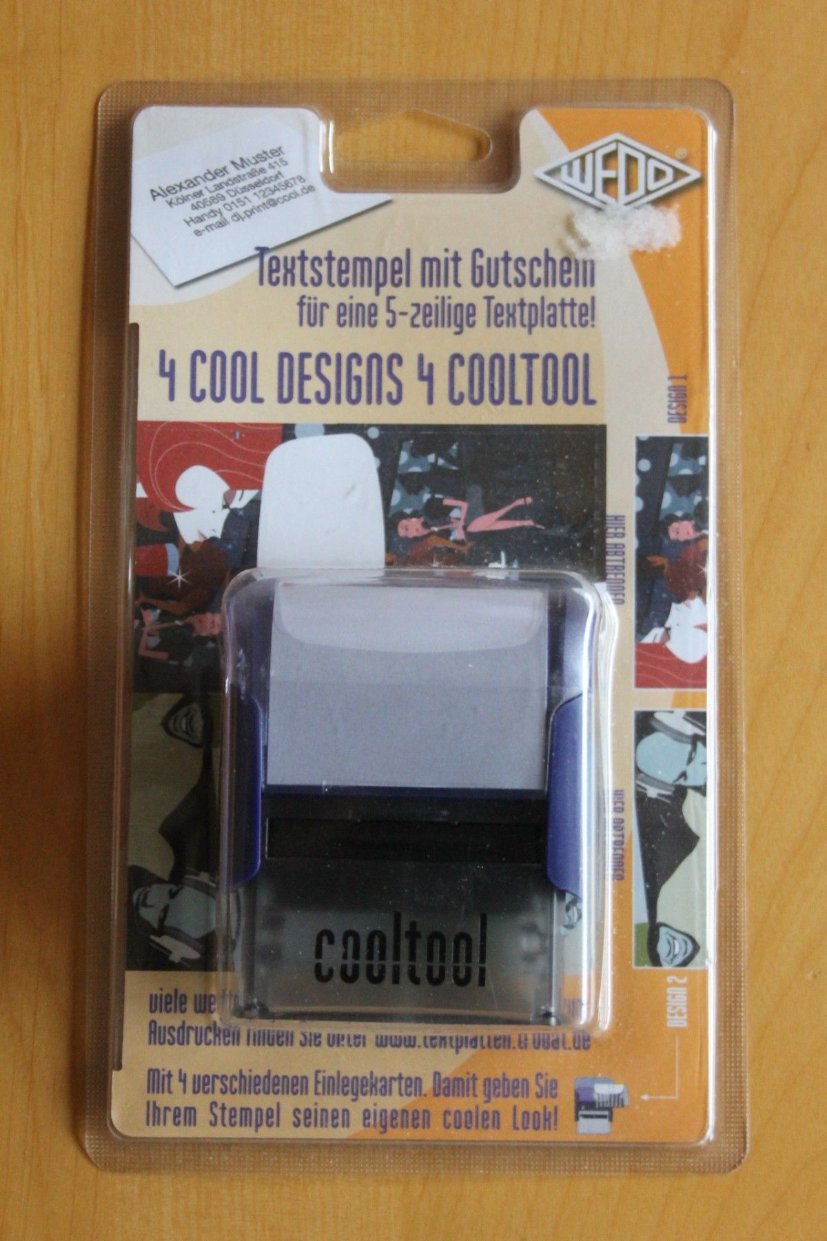 Textstempel "Cooltool" Stempelautomat; blaues Gehäuse; 5-zeilig, mit Gutschein