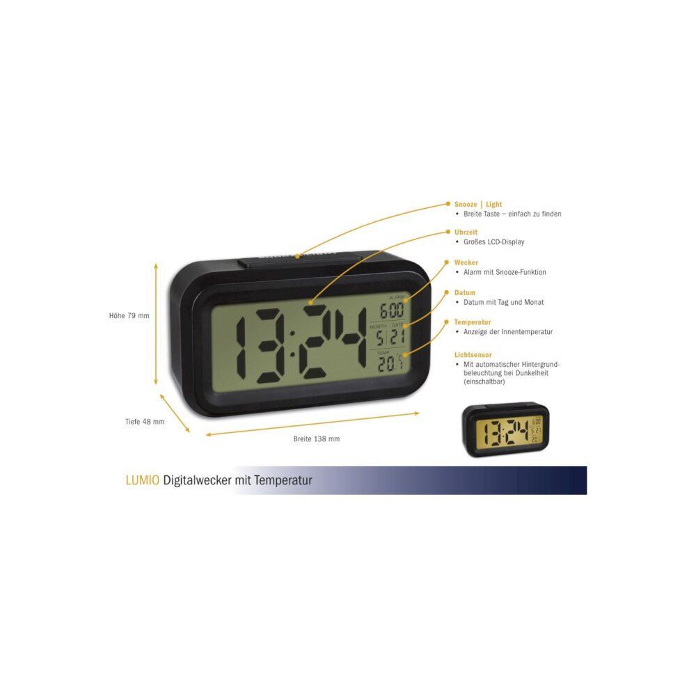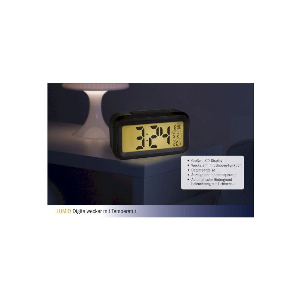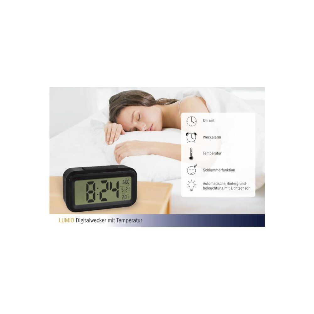 TFA - Digitaler Wecker mit Temperatur LUMIO 60.2018 - schwarz weiß