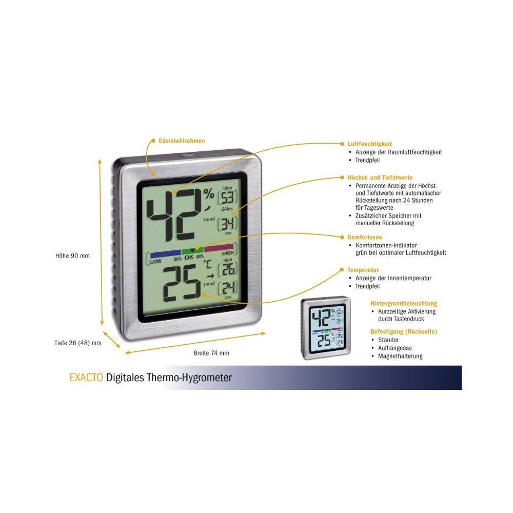 TFA - Digitales Thermo-Hygrometer EXACTO 30.5047.54 - silber