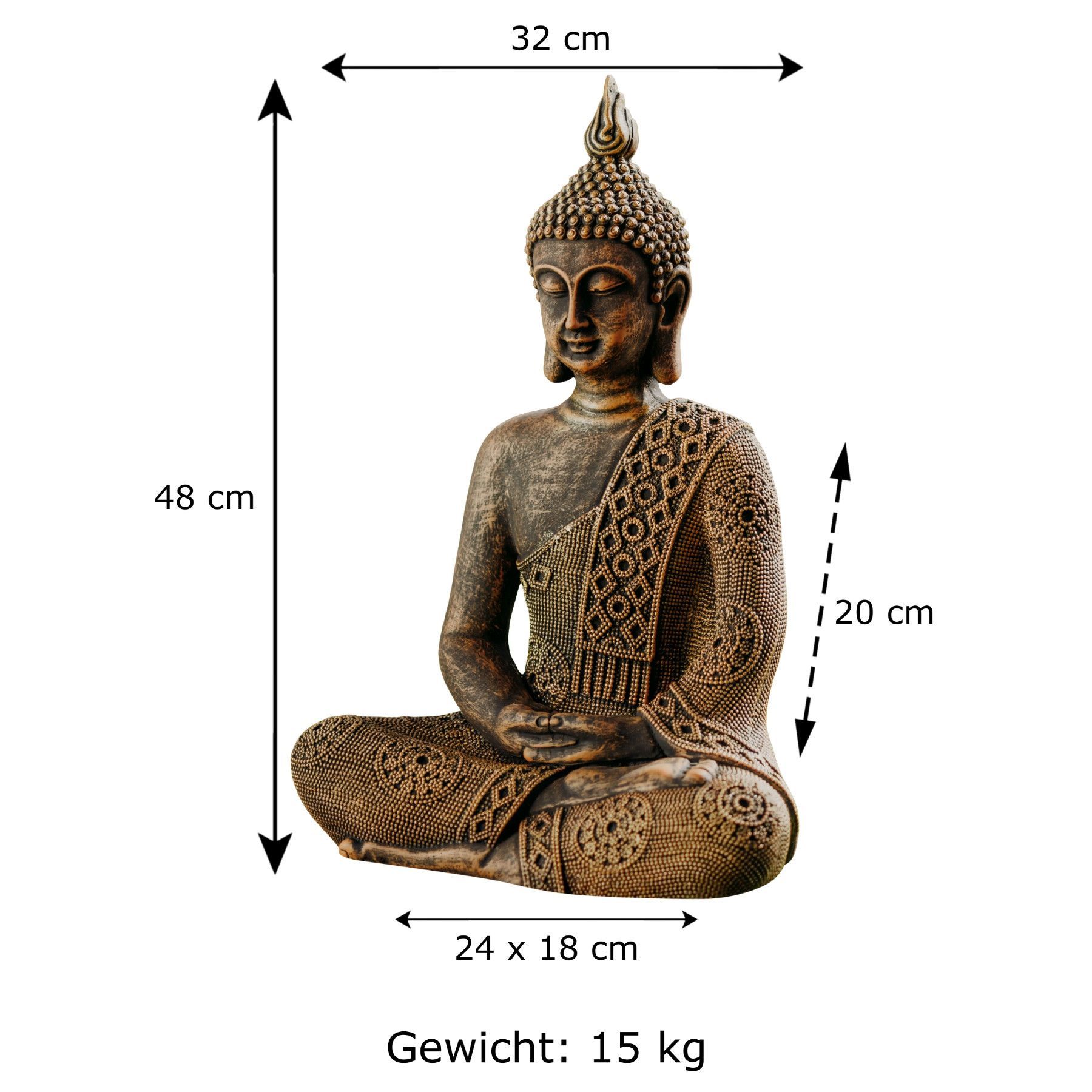 Thailändische Buddha Statue für Garten, Steinguss, 49 cm Höhe, 16 kg, Frostfest
