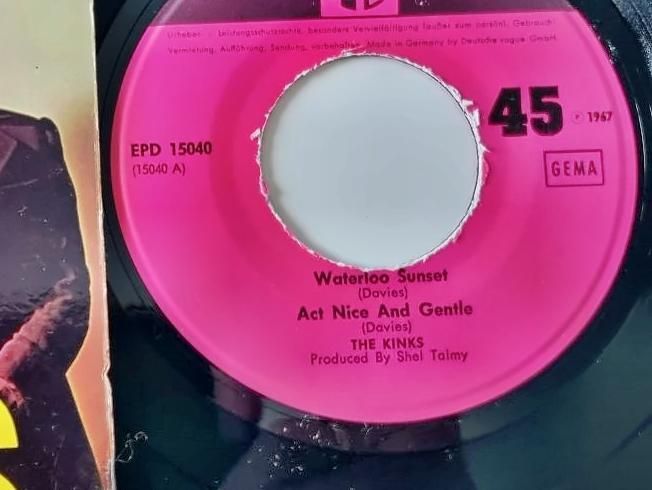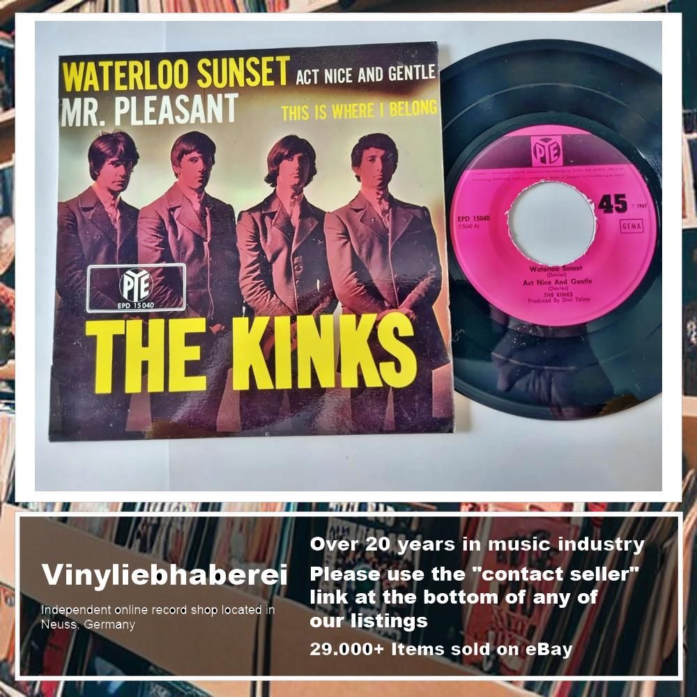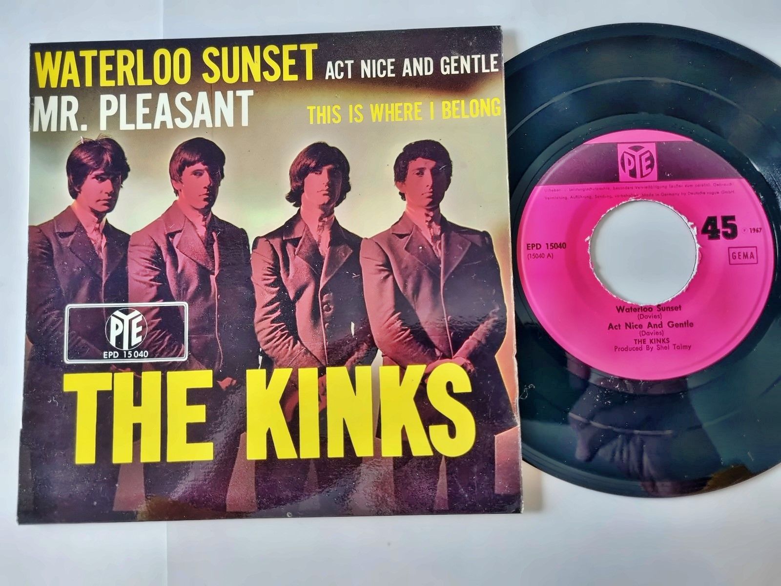 Ihr ersteigert hier folgenden Artikel: The Kinks - Waterloo Sunset Mr. Pleasant 7'' Vinyl EP France Germany Interpret: The Kinks AKA: The Boll-Weevils, The Ravens Members: Alan Holmes , Andy Pyle , Bob Henrit , Dave Davies, Gordon Edwards , Ian Gibbons , Jim Rodford , John Beecham , John Dalton , Jo