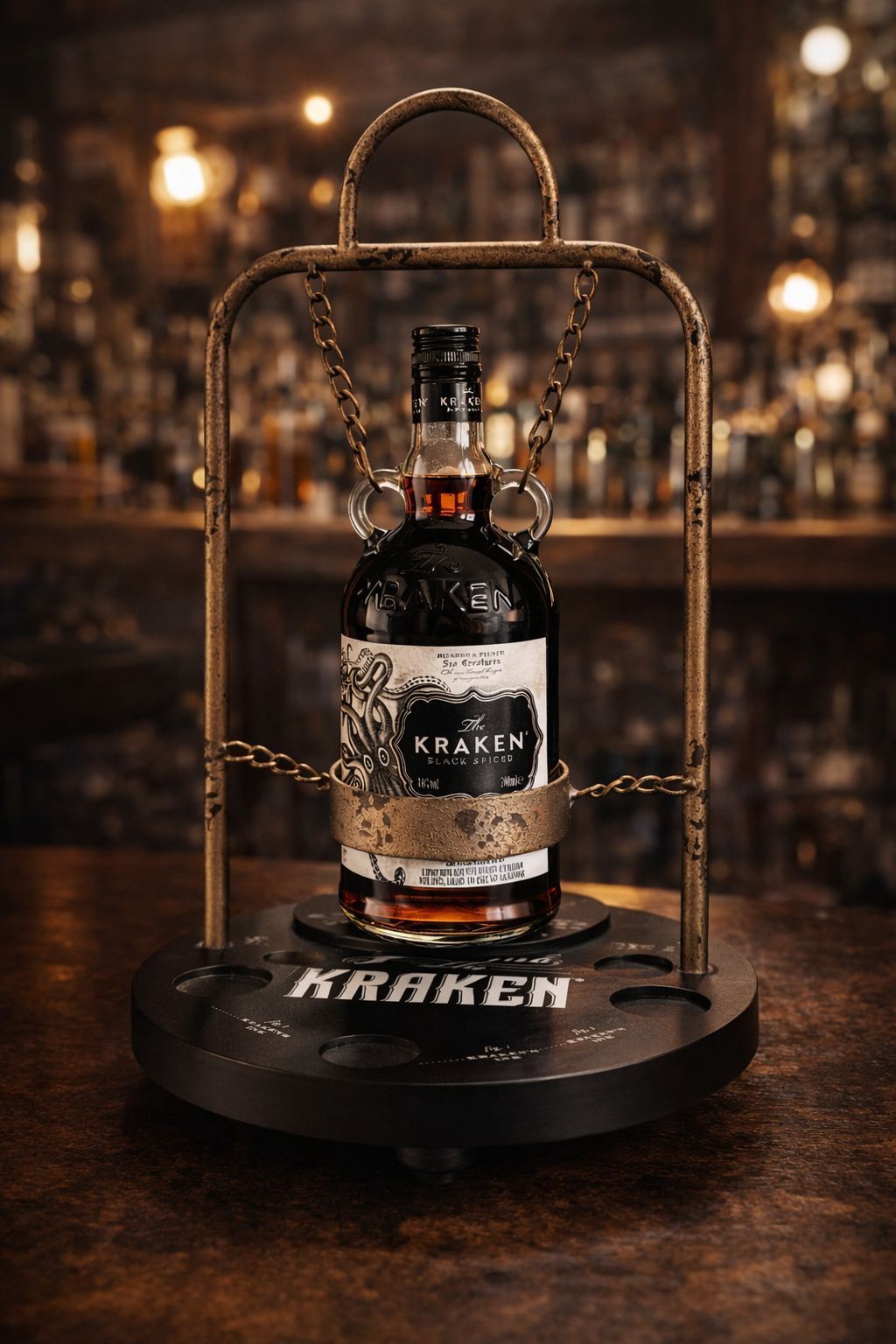 The Kraken Flaschenhalter / Display – Dekorative Metall-Halterung im Kraken-Des