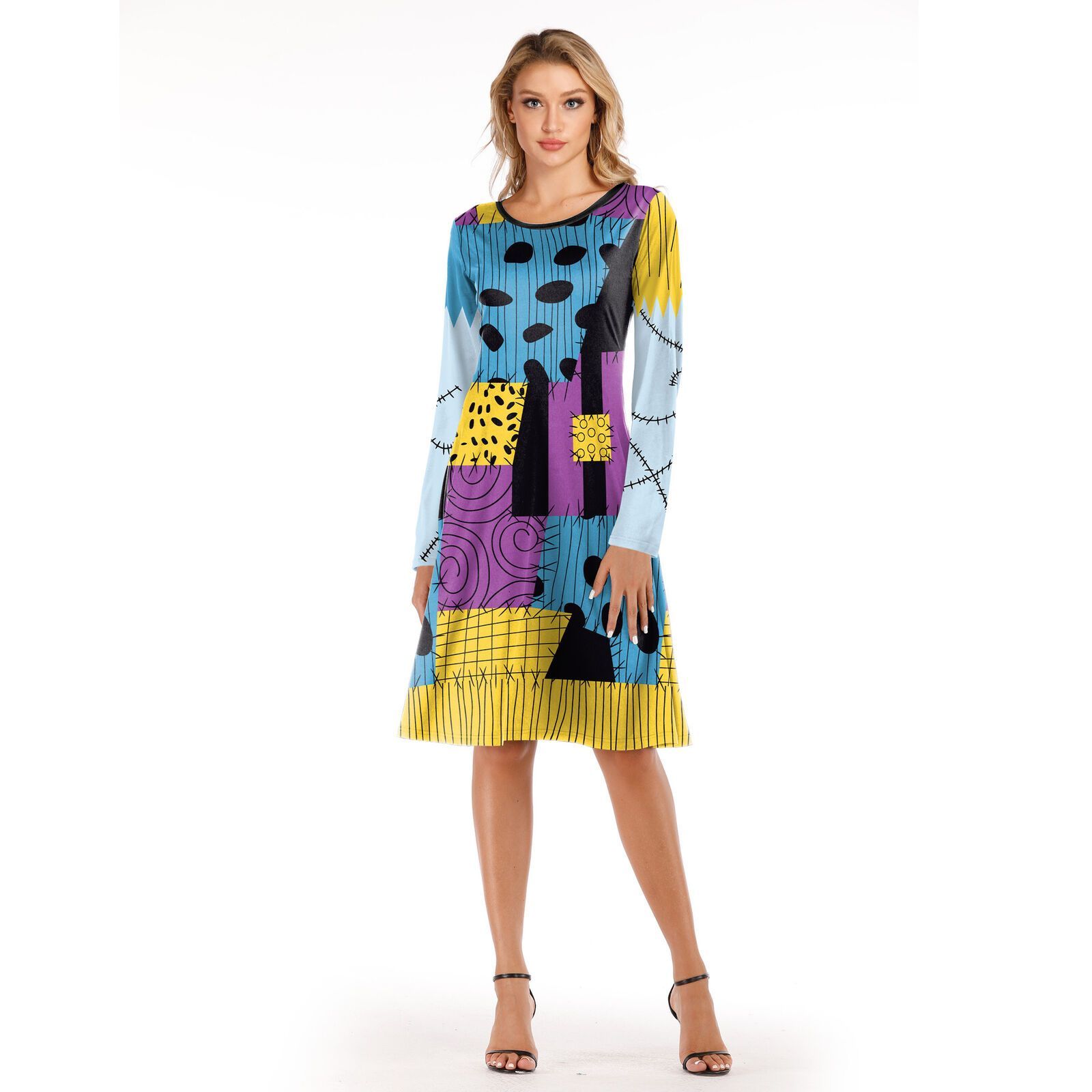 The Nightmare Before Christmas Cosplay Sally Kostum Damen Langarm Kleid