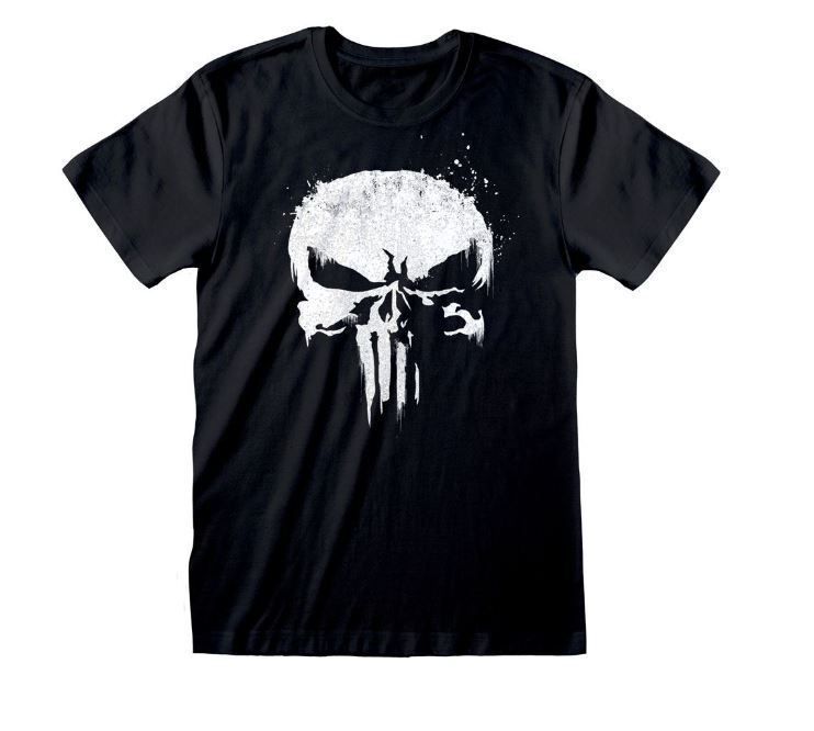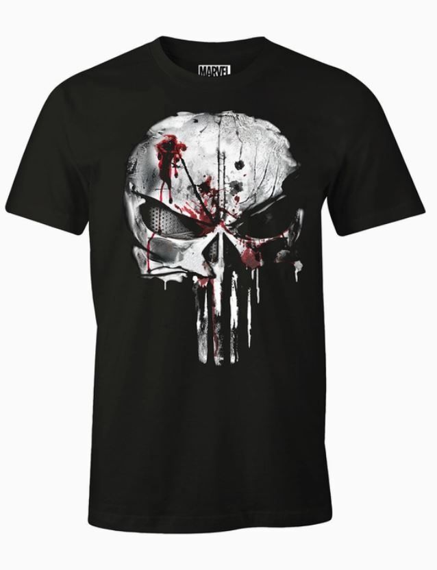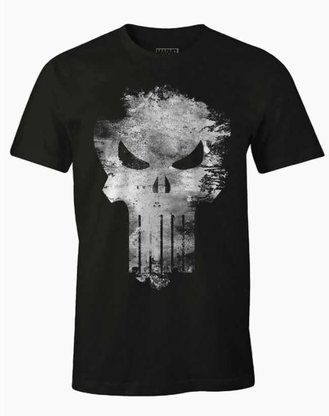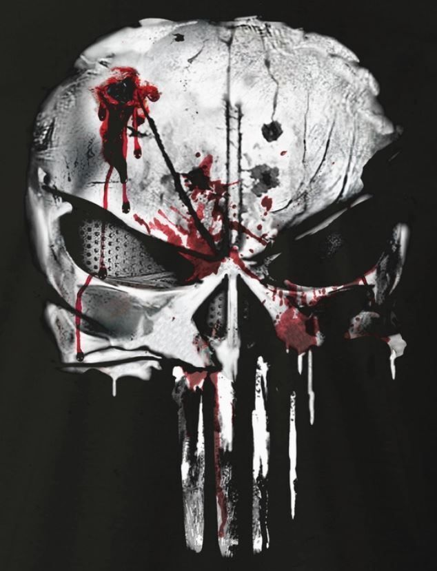 The Punisher T-Shirt: Bloody Skull Distress Skull Punisher Logo Marvel 100 % BW
