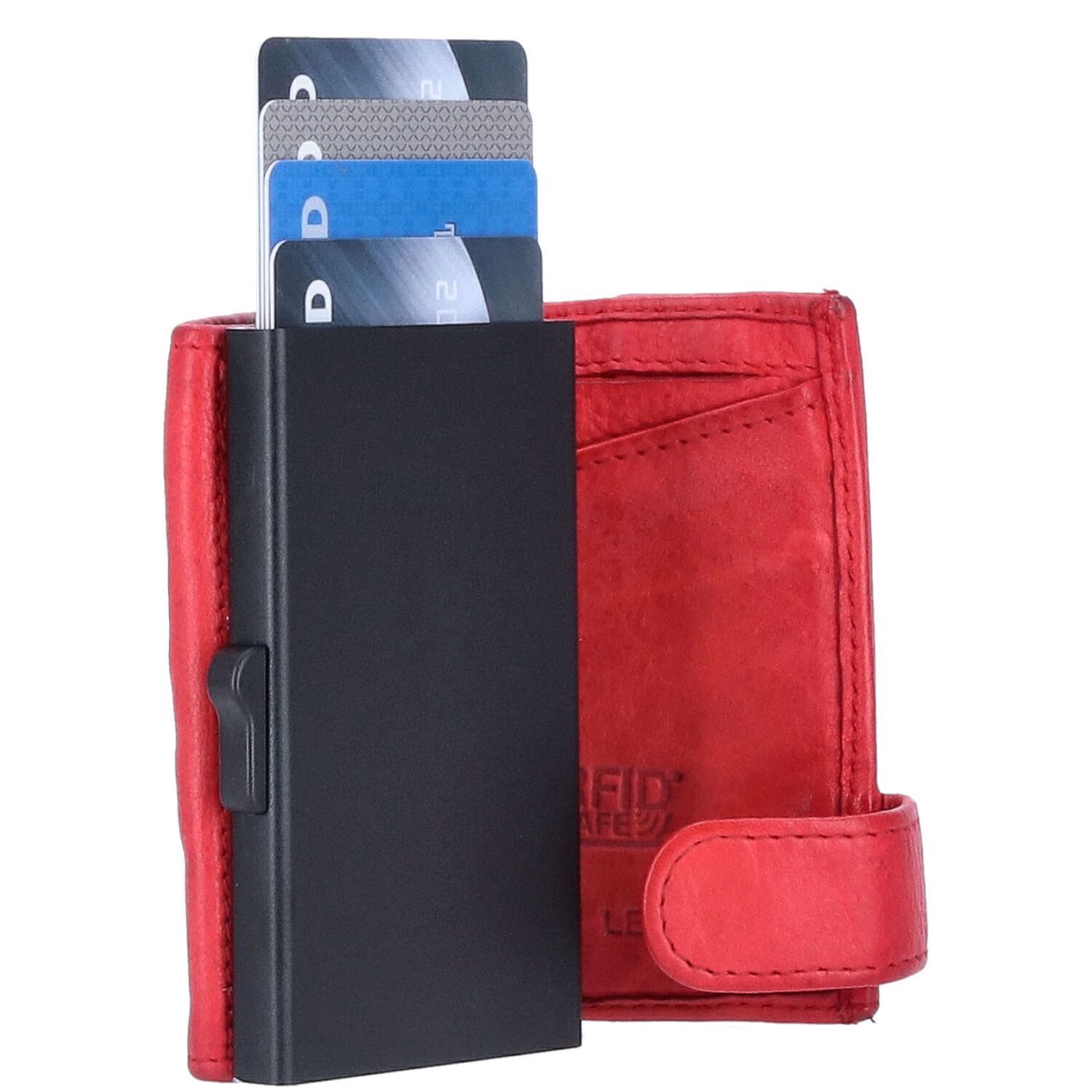 The Skandinavian Brand Leder Kreditkarten Etui mit Kleingeldfach rot