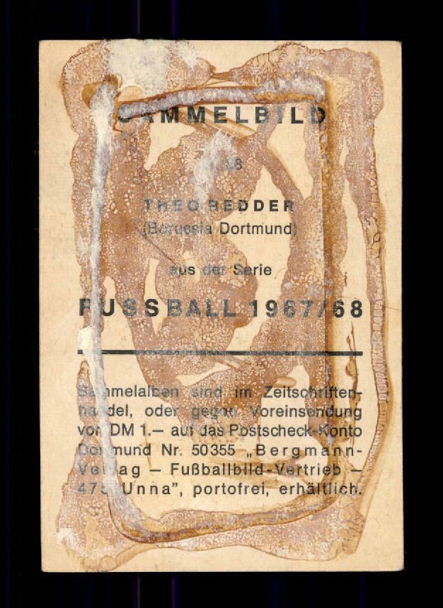 Theo Redder Borussia Dortmund Bergmann Sammelbild 1967-68 Original Signiert
