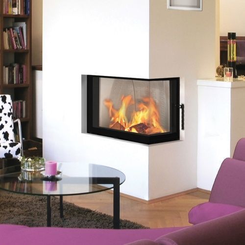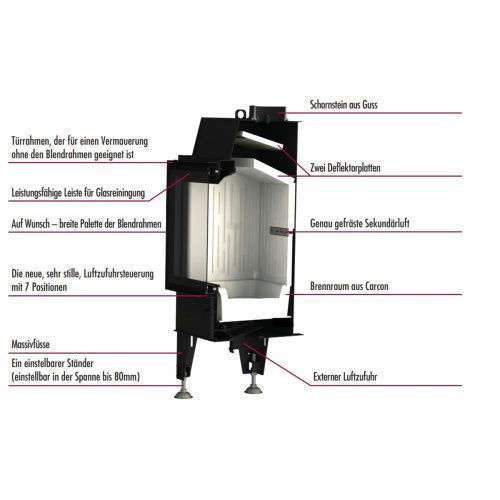 BeF Therm 6CP: Eck-Kamineinsatz mit 6?kW, rechtsverglast, Schwenktür, Carcon-Brennraum & externer Luftzufuhr. Ideal für moderne Wohnräume mit Stil.