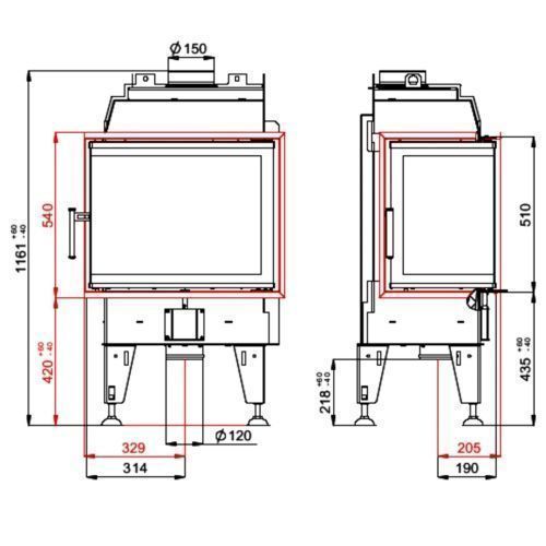 Therm 7CL Eck-Kamineinsatz Links verglast 7kW