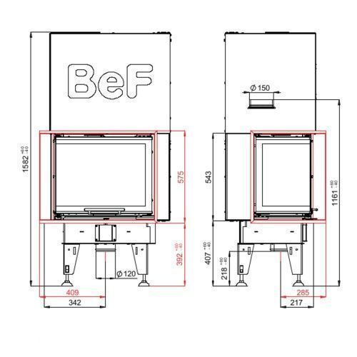BeF Therm V7CL: 7?kW Eck-Kamineinsatz mit linksseitiger Verglasung, Carcon-Brennraum & Hebetür. Ideal für stilvolle Wohnräume mit effizientem Heizbedarf.