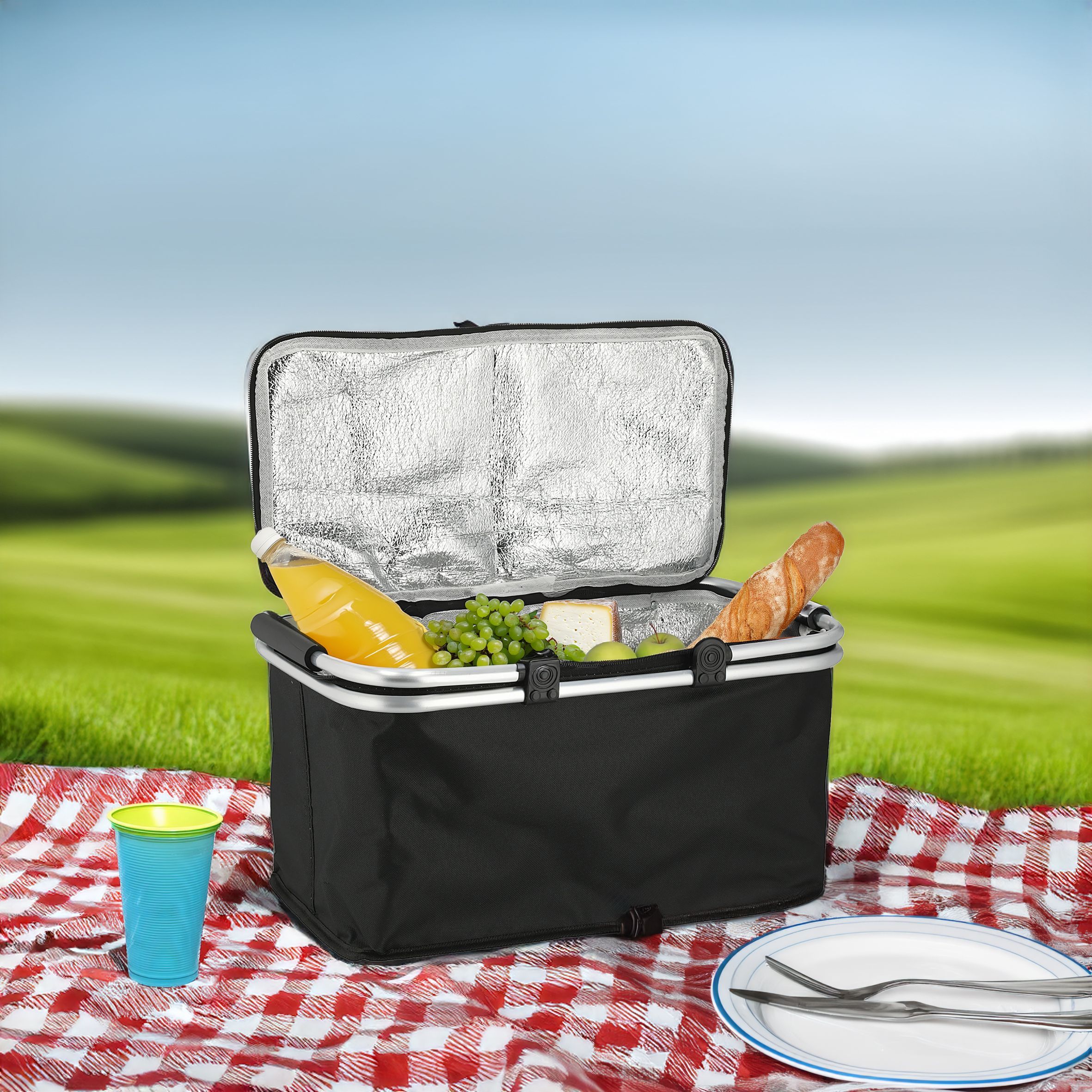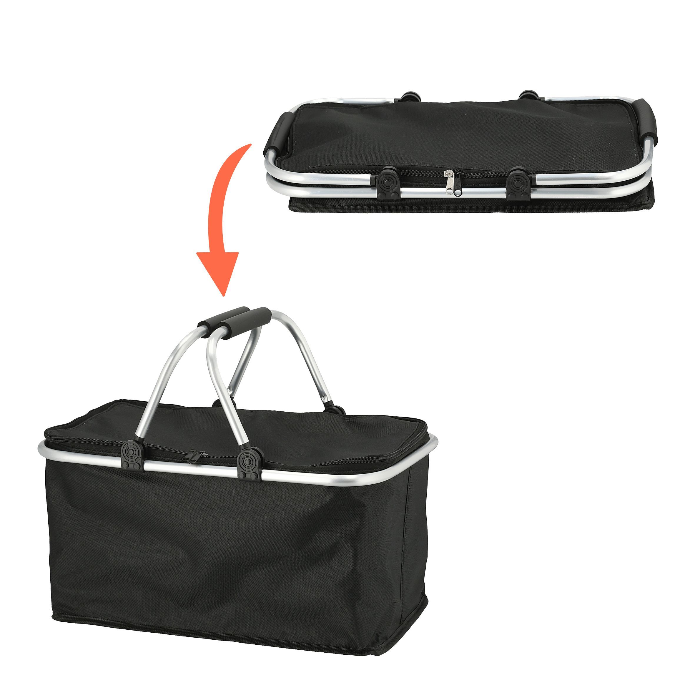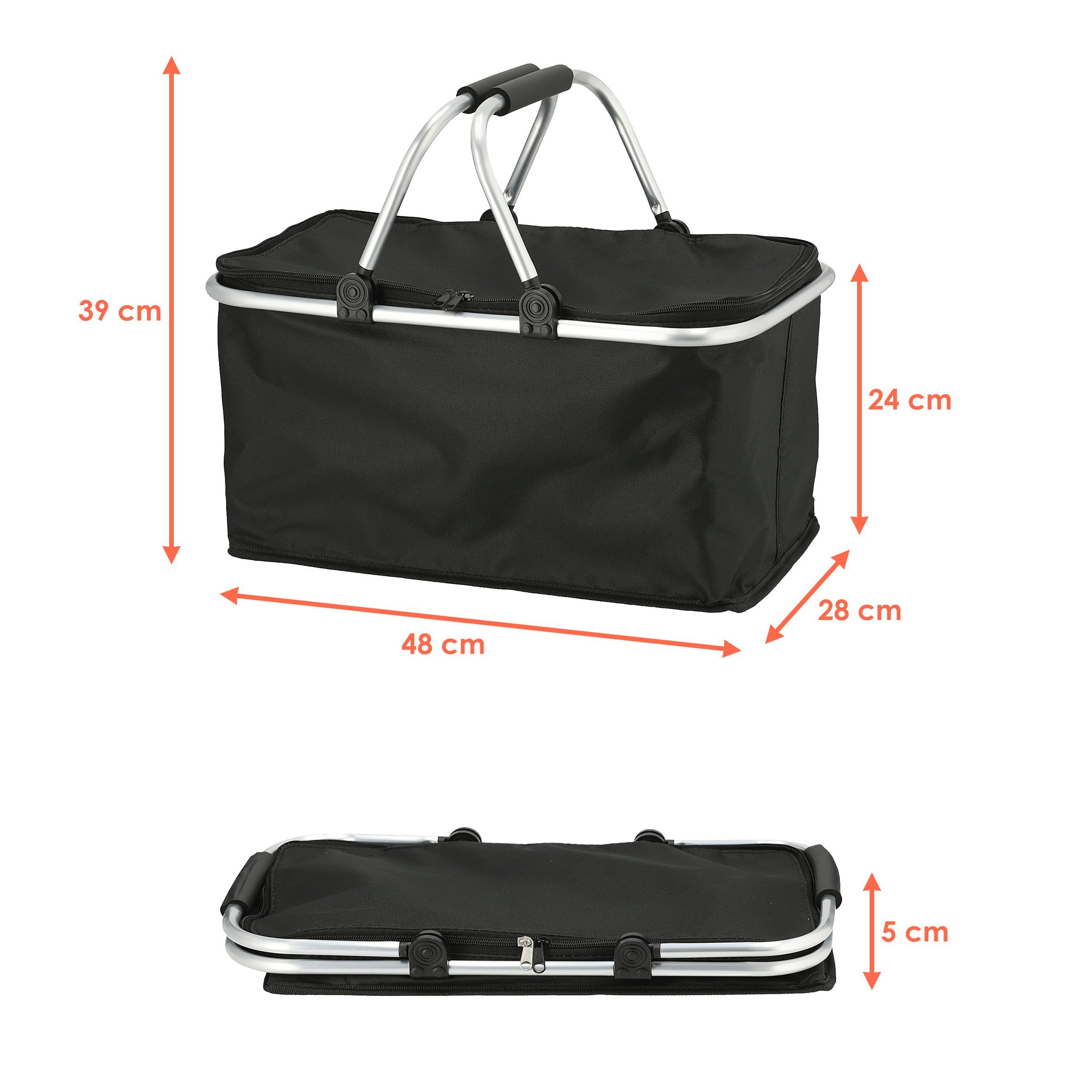 Thermo Einkaufskorb schwarz 30 L - 48 x 24 cm - Kühl Tasche Picknick Trage Korb