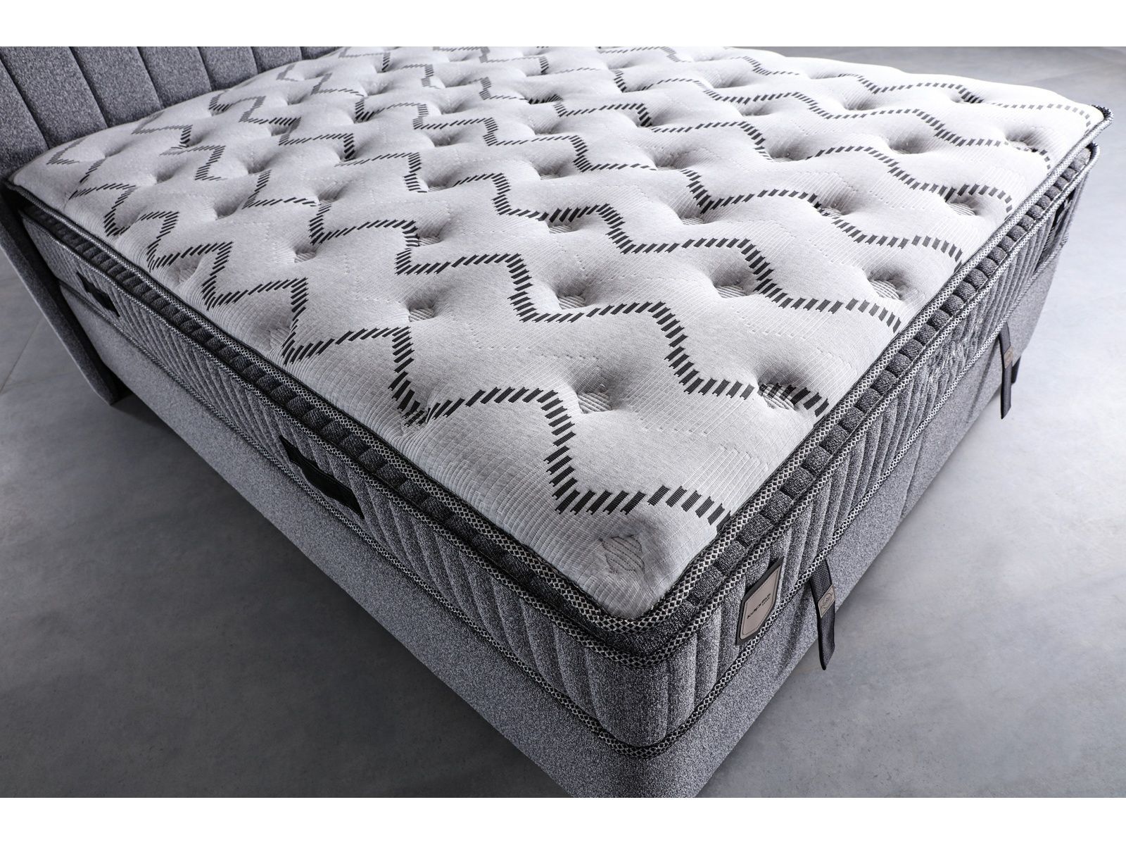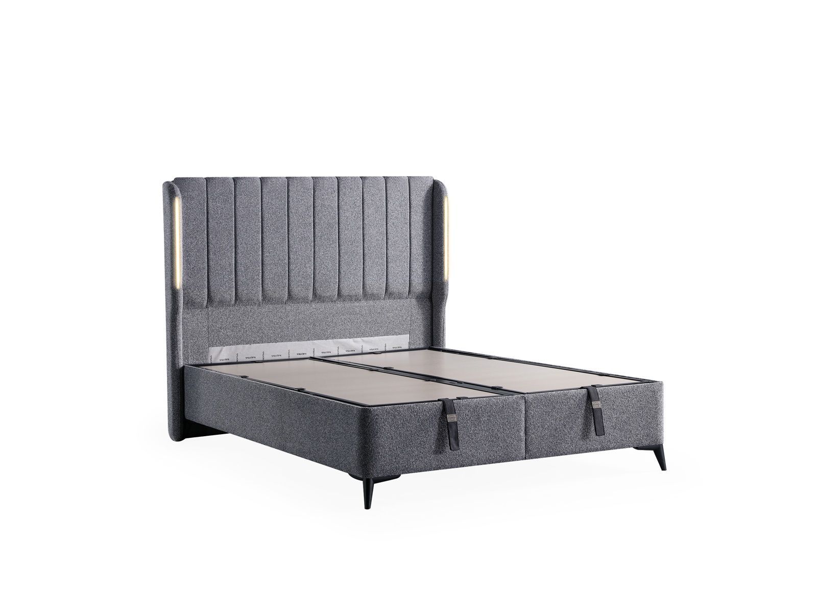 Grau, LED-Kopfteil, Taschenfederkern und Stauraum – modernes Bett-Set für hohen Schlafkomfort.