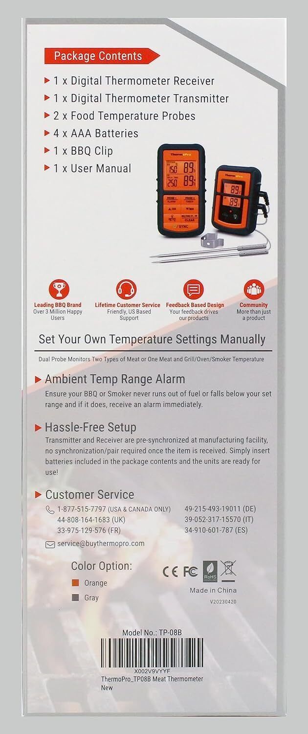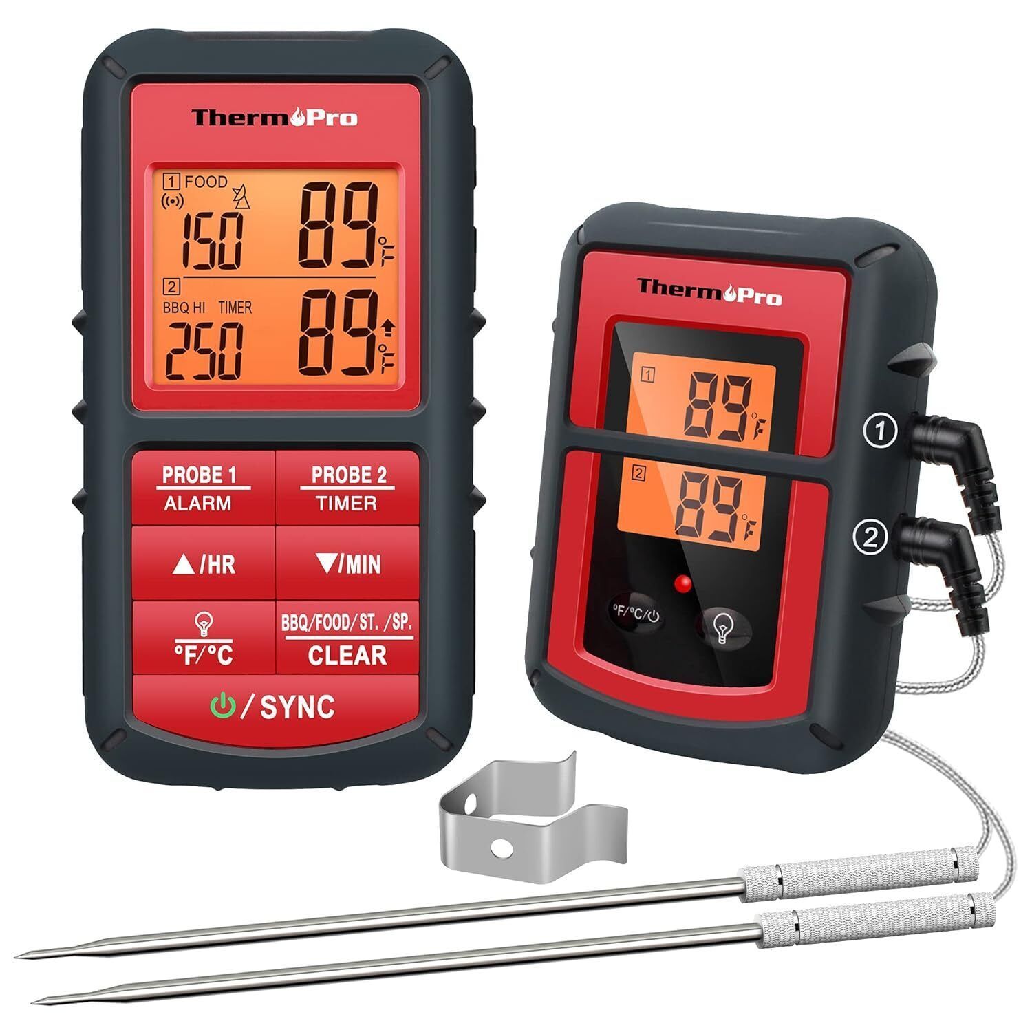ThermoPro TP08C digitales Küchenthermometer Funk Fleischthermometer mit 2 Sonden