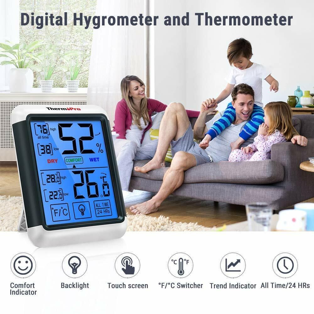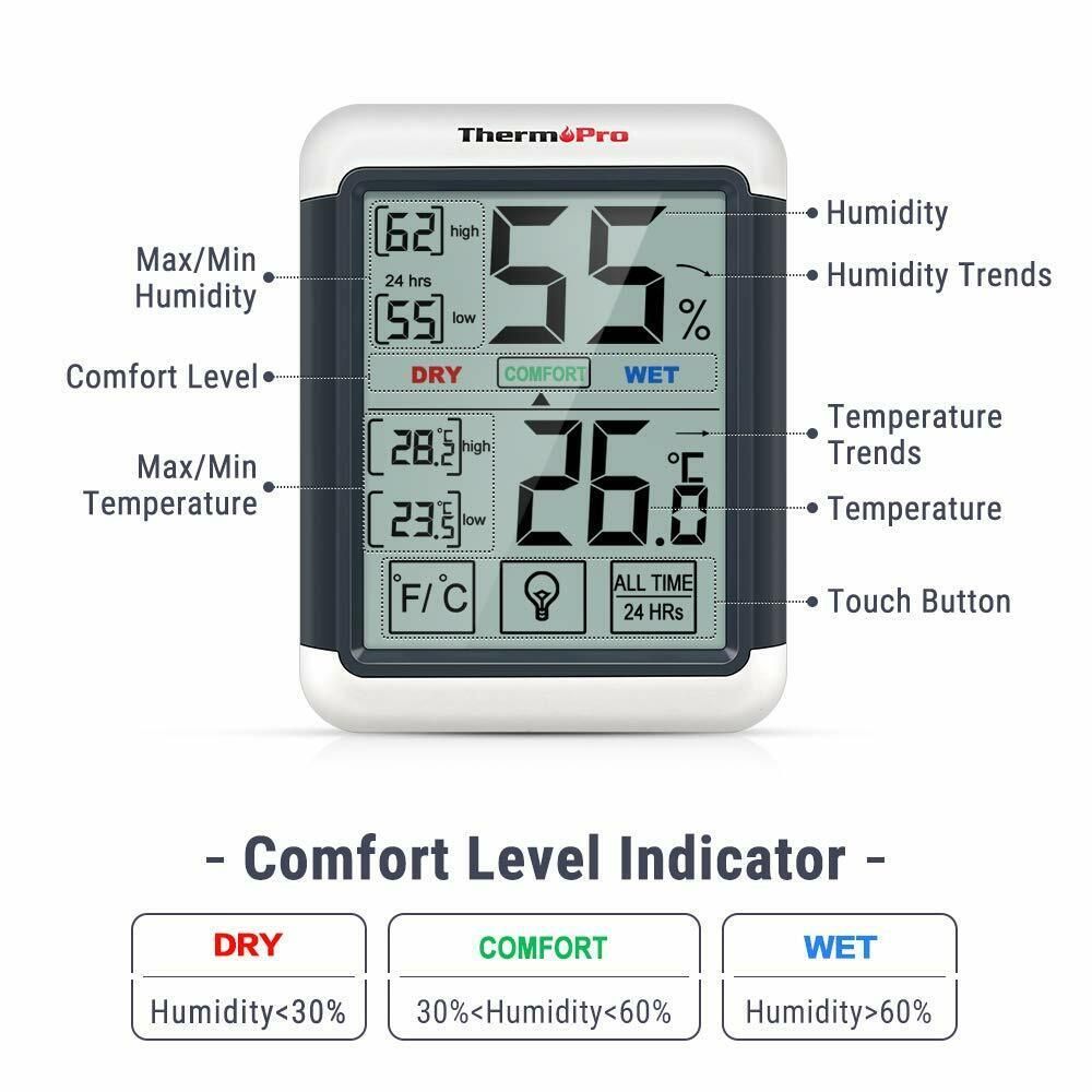 ThermoPro TP55 digitales Thermo-Hygrometer Raumklima-Indikator LCD-Display weiß