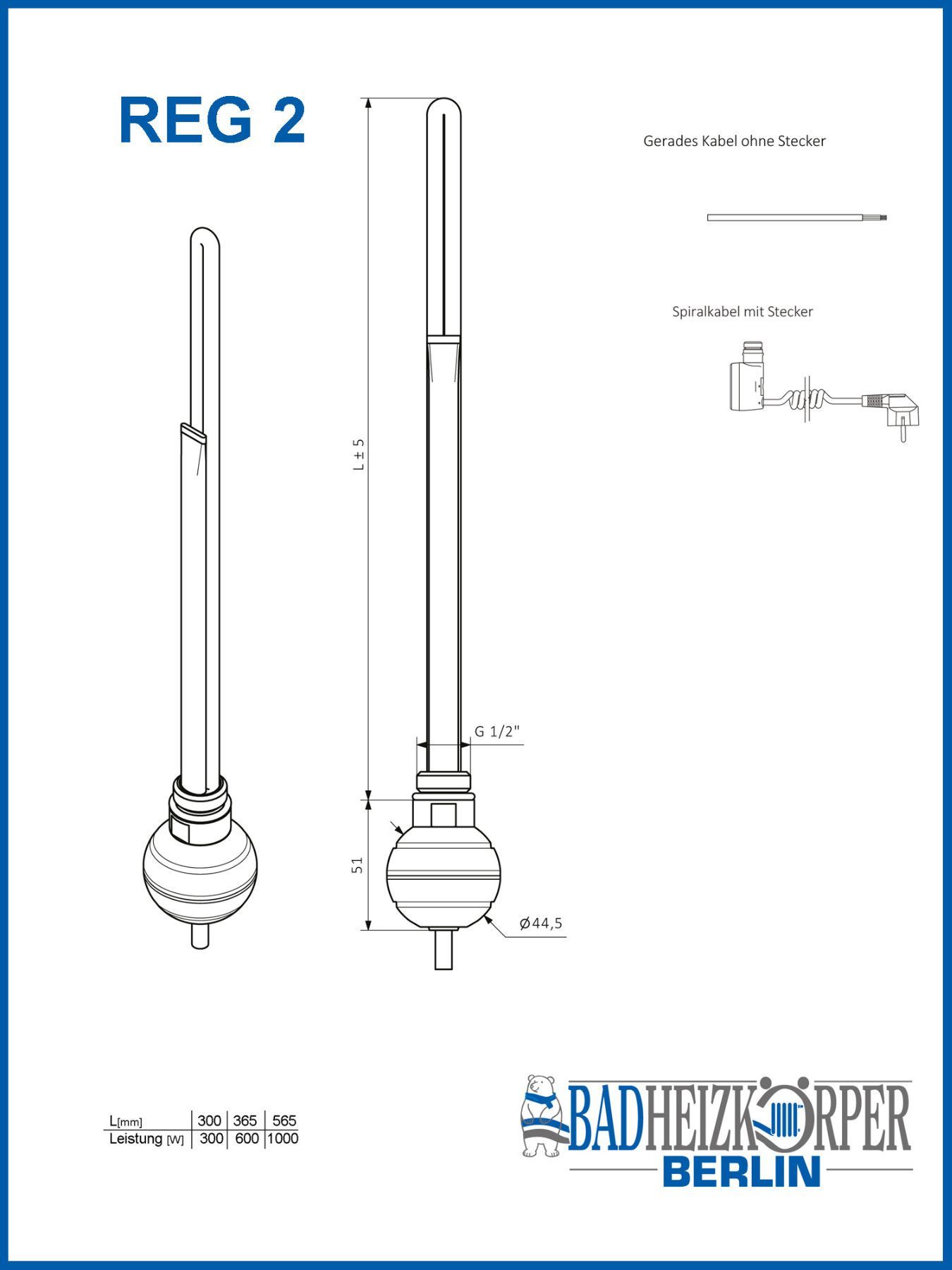 Thermostat Heizstab, Heizpatrone, Heizelement Modell REG 2 für Badheizkörper