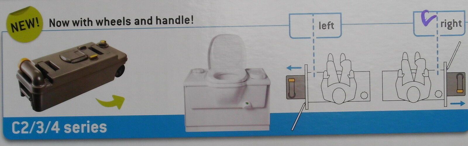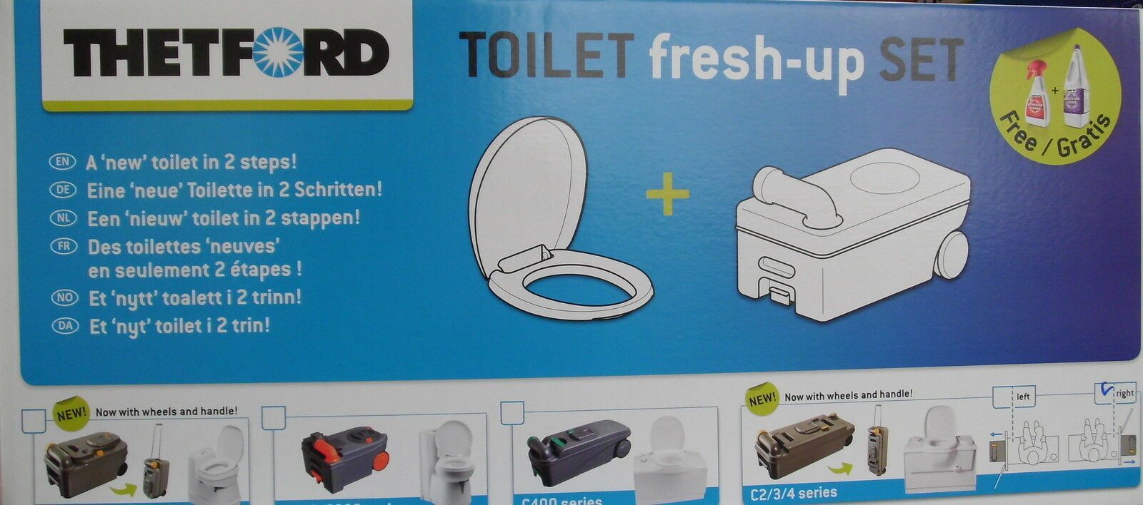 Thetford Fresh-Up-Set C2 Rechts Cassette Tank mit Räder Deckel Brille 301f958 NEU