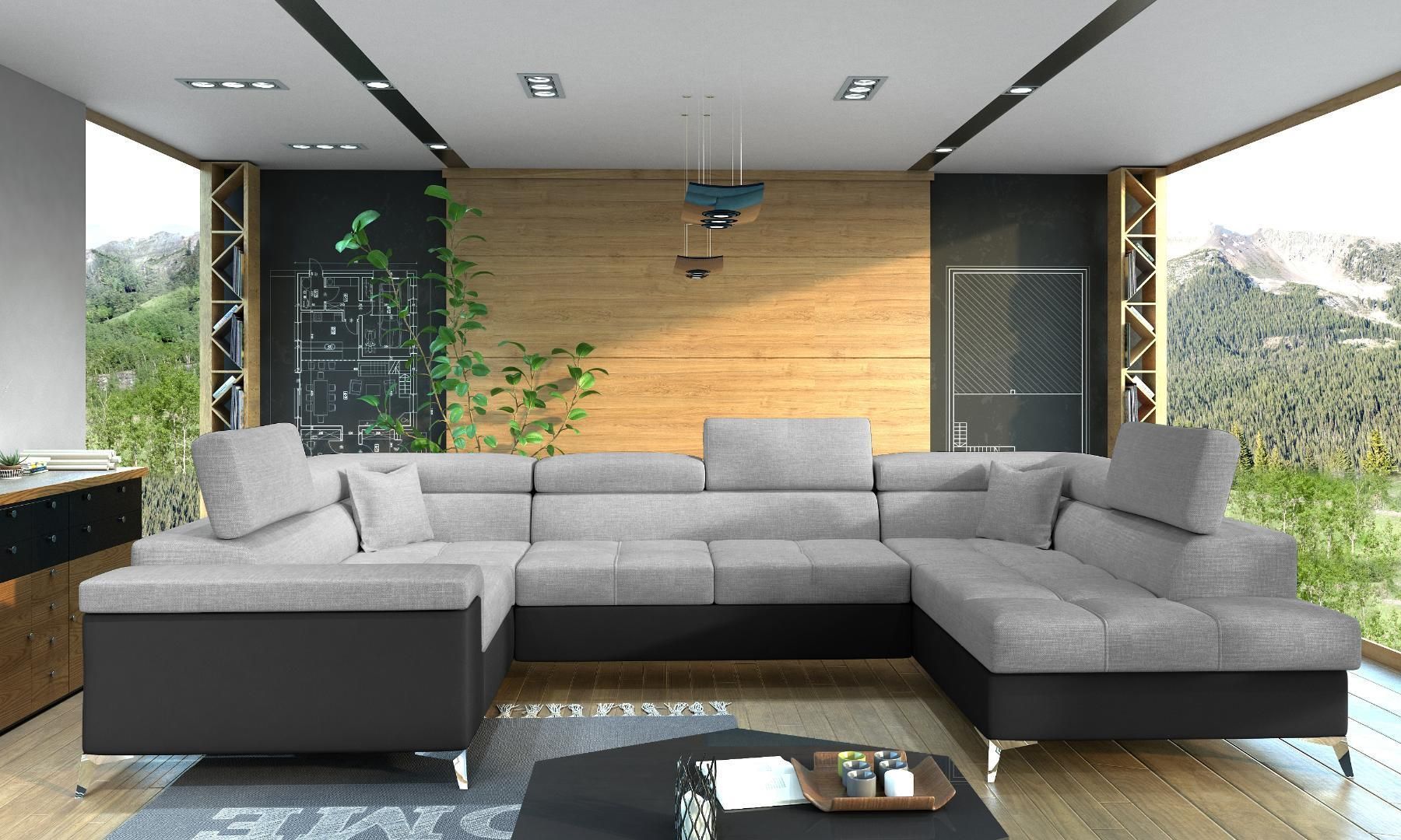 Wohnlandschaft mit Schlaffunktion Beno - U-Form Couch Ecksofa Couchgarnitur Big Sofa