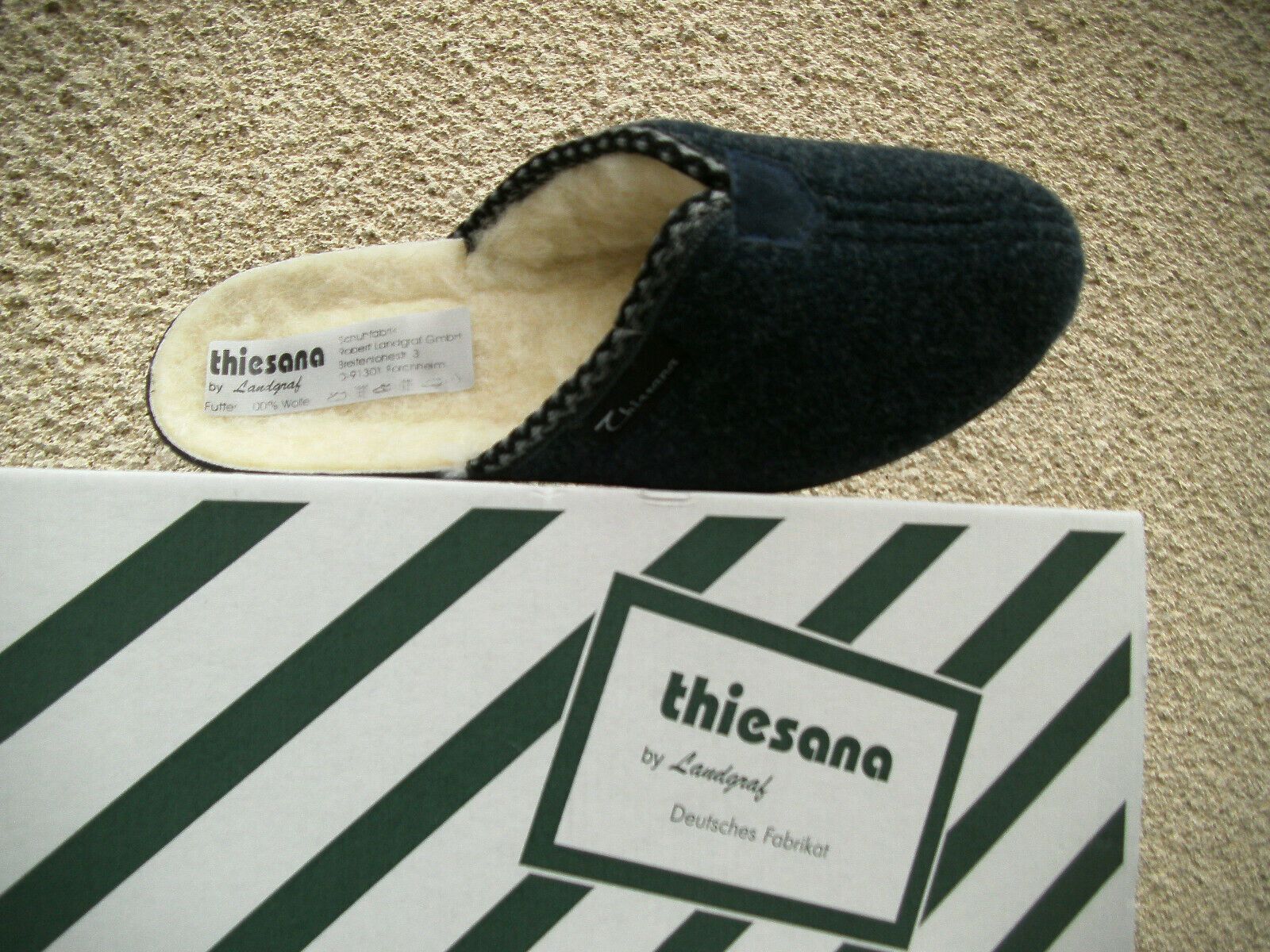 Thiesana Damen Hausschuhe marine Schurwolle, Fußbett - Made in Germany Gr 36 - 43