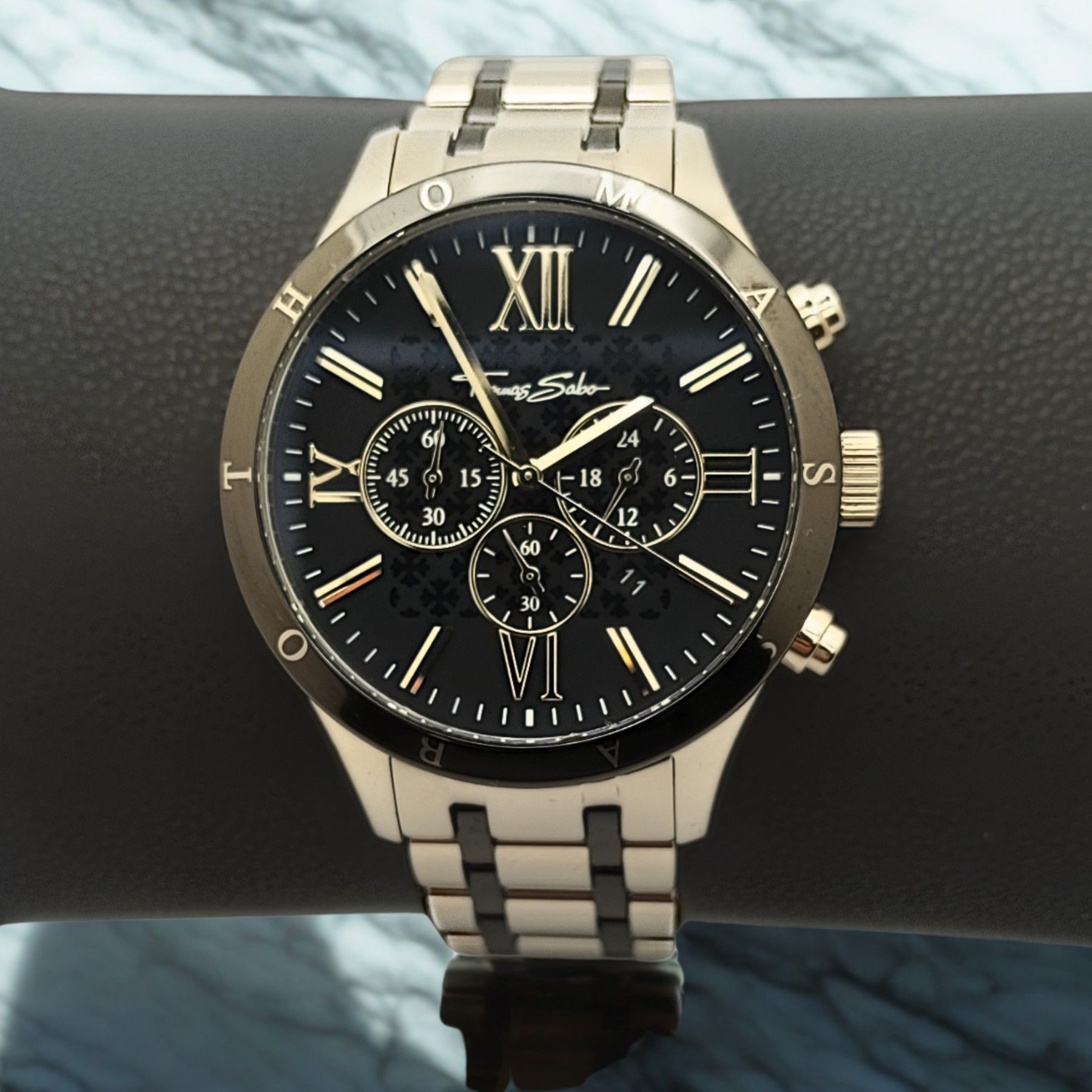 Keramikband - Chronograph - Die Thomas Sabo Rebel Urban Chronograph Herrenuhr (Ref. WA0139-222-203-43) vereint maskulines Design mit hochwertigen Materialien. Das robuste Edelstahlgehäuse in Kombination mit einem markanten Keramik-Edelstahl-Armband verleiht der Uhr nicht nur eine edle Optik, sondern... Mehr