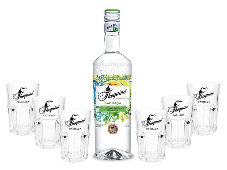Thoquino Cachaca Set - Thoquino Cachaca 1L (40% Vol) + 6xGläser Glas Caipirinha
