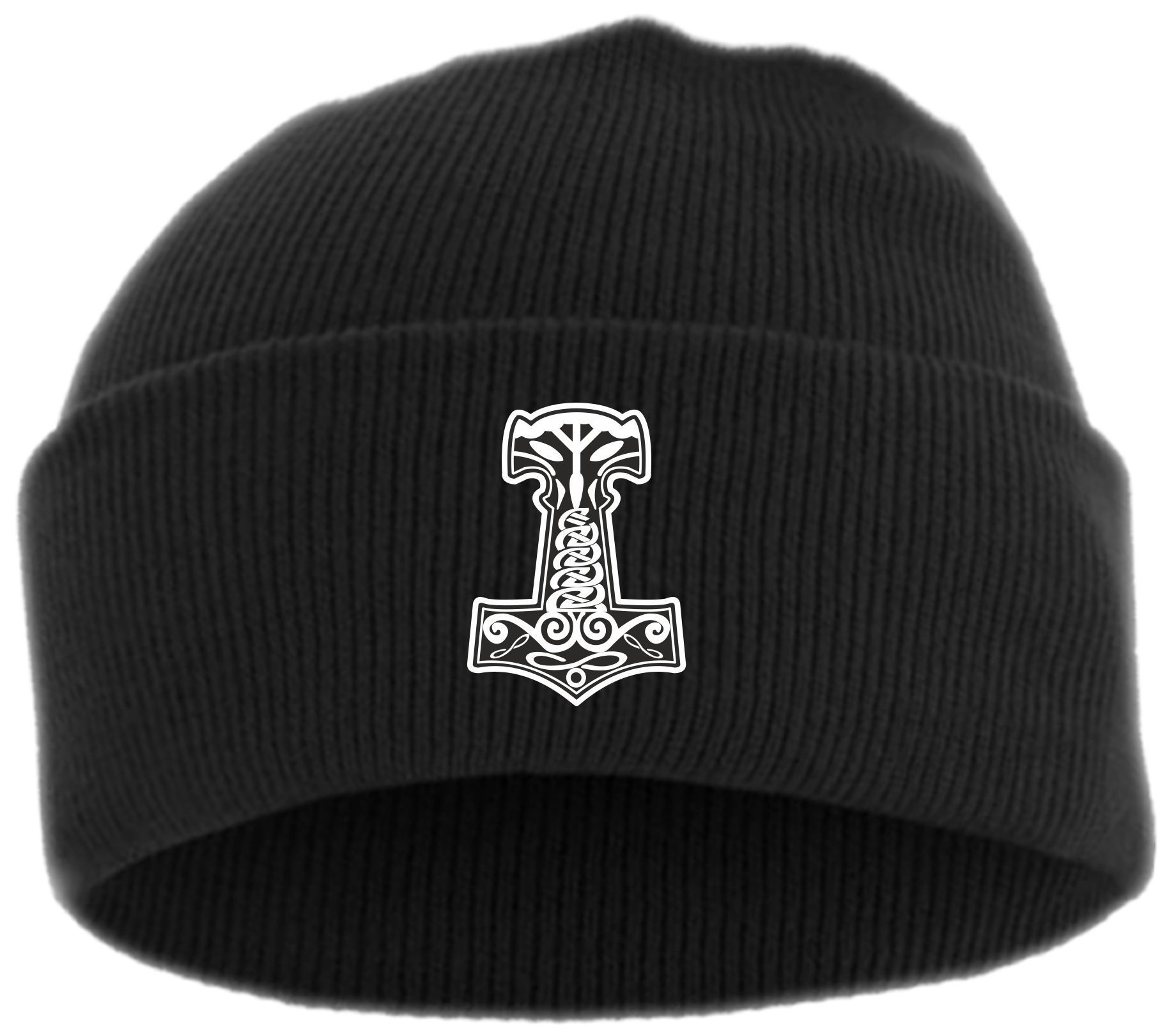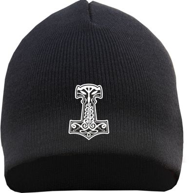 • Thorshammer Mjolnir Beanie Mütze - Bestickt - Strickmütze Wintermütze