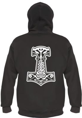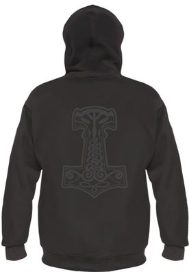 • Thorshammer Mjolnir Kapuzenjacke Rückendruck Schwarz