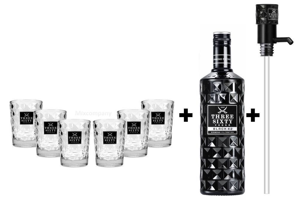 Three Sixty Three Sixty Set Geschenkset ? Three Sixty Black Vodka Wodka 3L 3000ml (42% Vol)