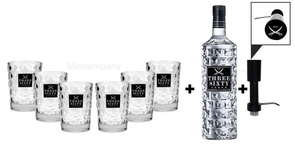 Three Sixty Three Sixty Set Geschenkset ? Three Sixty Vodka Wodka3L 3000ml (37,5% Vol) + Pum
