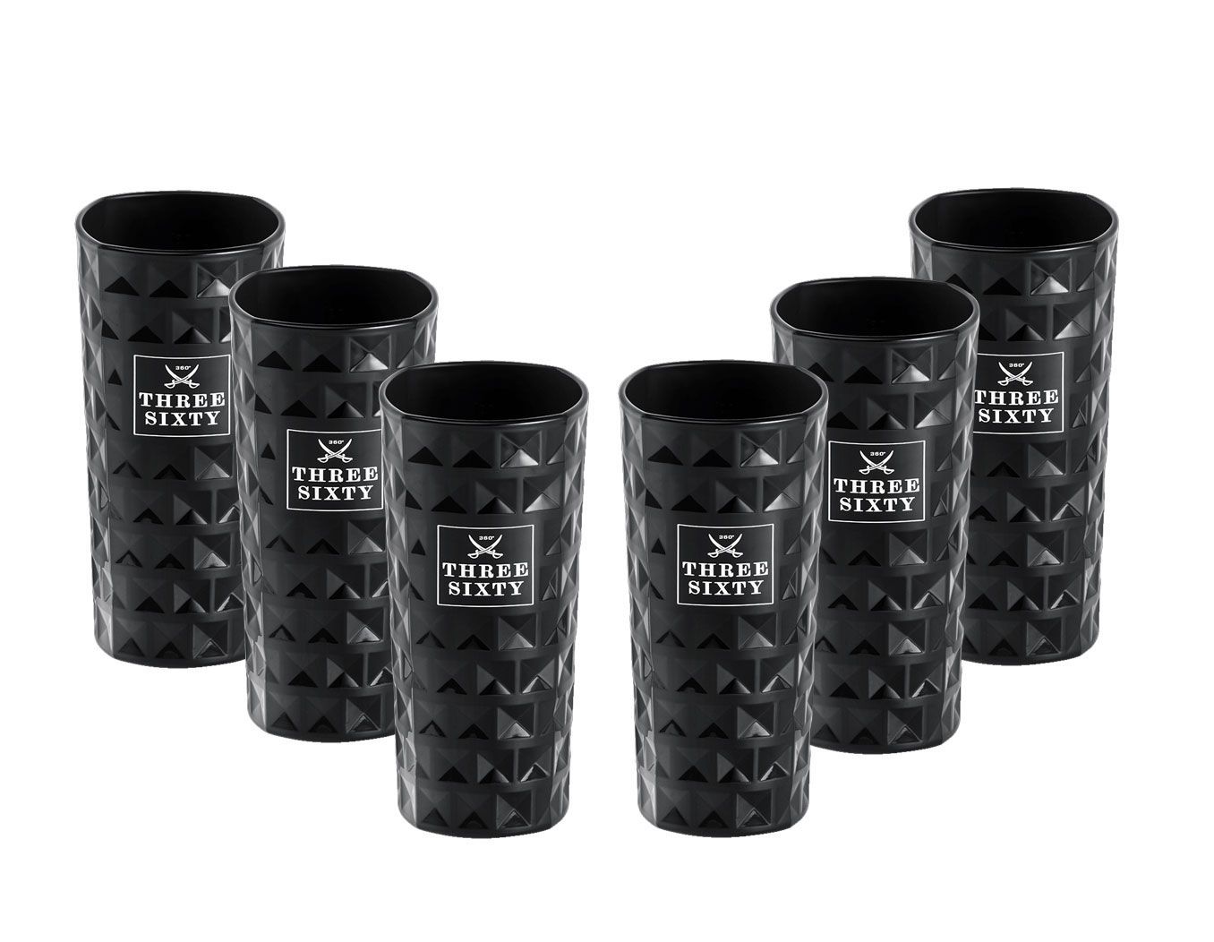 Three Sixty Three Sixty Vodka Glas Gläser-Set - 6x Black Longdrink-Gläser eckig schwarz