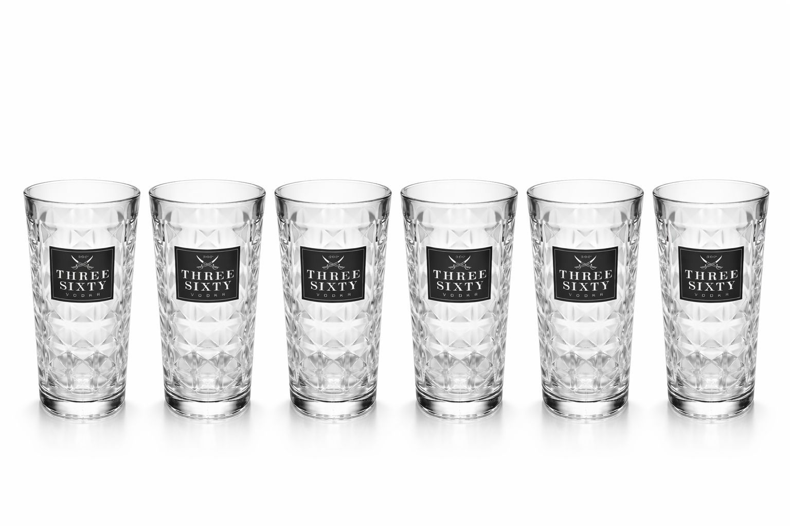 Three Sixty Three Sixty Vodka Longdrinkgläser 6er Set 0,3L geeicht – oben rund, mit Logo, s